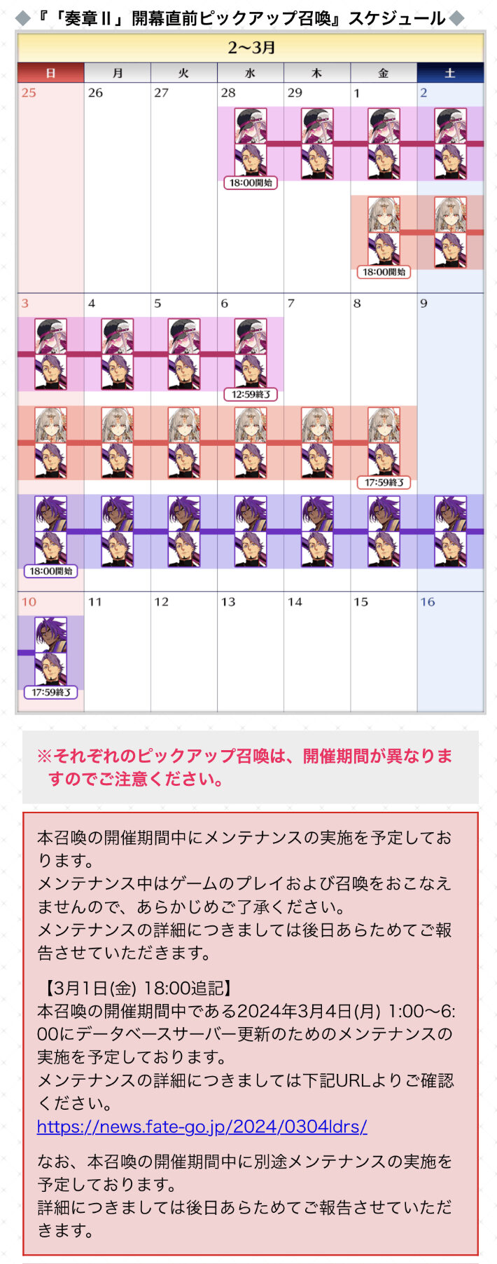 んでソレ以外にも今回ピックアップ期間中にメンテナンスありますよってアナウンスあるので、6日かな?って話をしてる