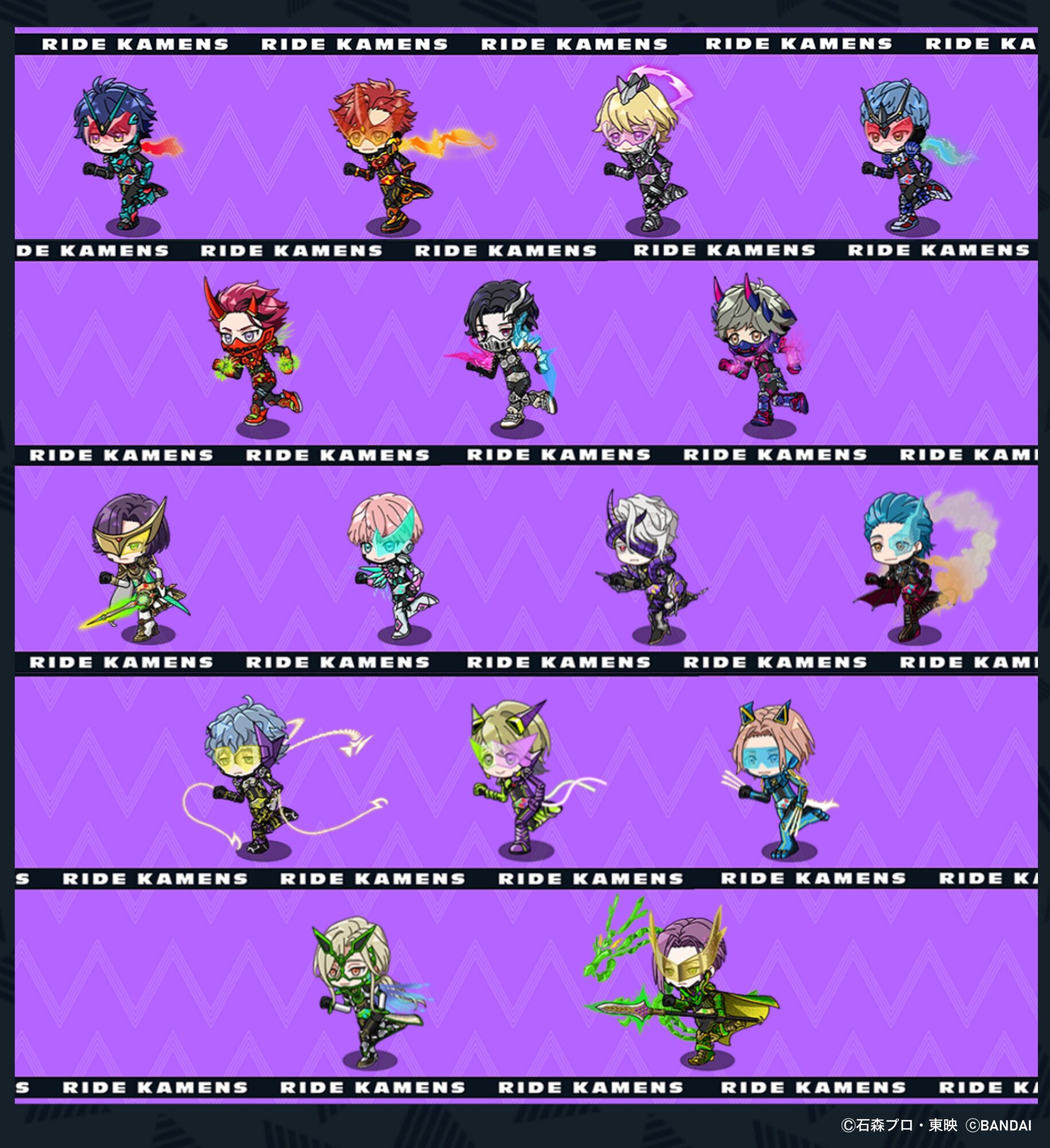 ギーツ、タイクーン、ナーゴ、バッファ、シロー、ギンペン、メリー、ダパーン、パンクジャック、ケイロウ、レター、ジャマト、グレア、チュータ、ゲッシー、ナッジスパロウ、ロポ、ゲイザー、グレア2、ジーン、ケケラ、キューン、ベロバ