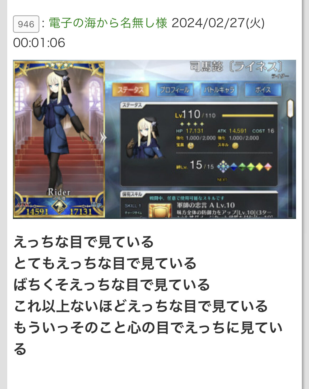 全再臨姉リスペクトという気持ち悪さよ>>980