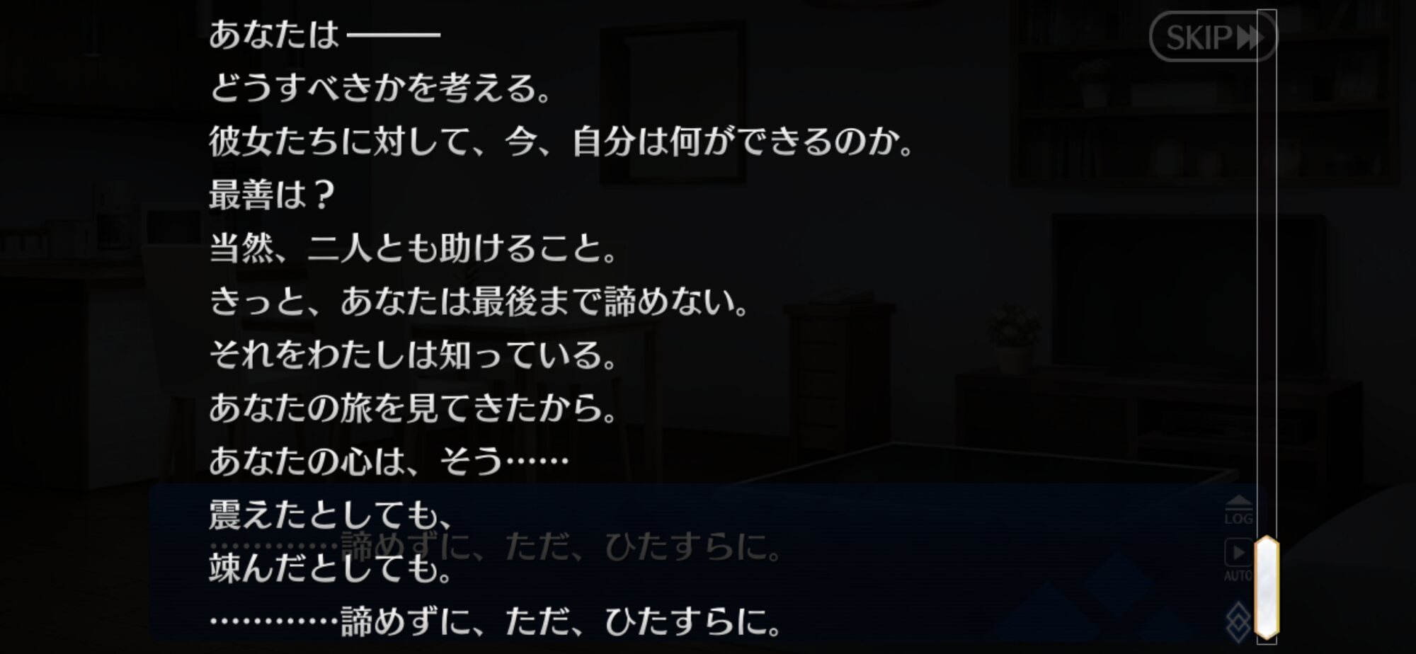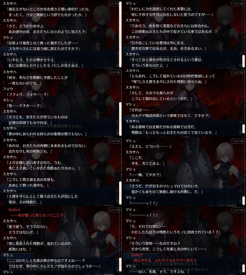 あと無茶する時も諦めず前に進む時ばかりだし、今の心情的にもマシュ筆頭に仲間たちの元に戻るだったり、ロマニが心の拠り所になってるだろうしで違和感あった