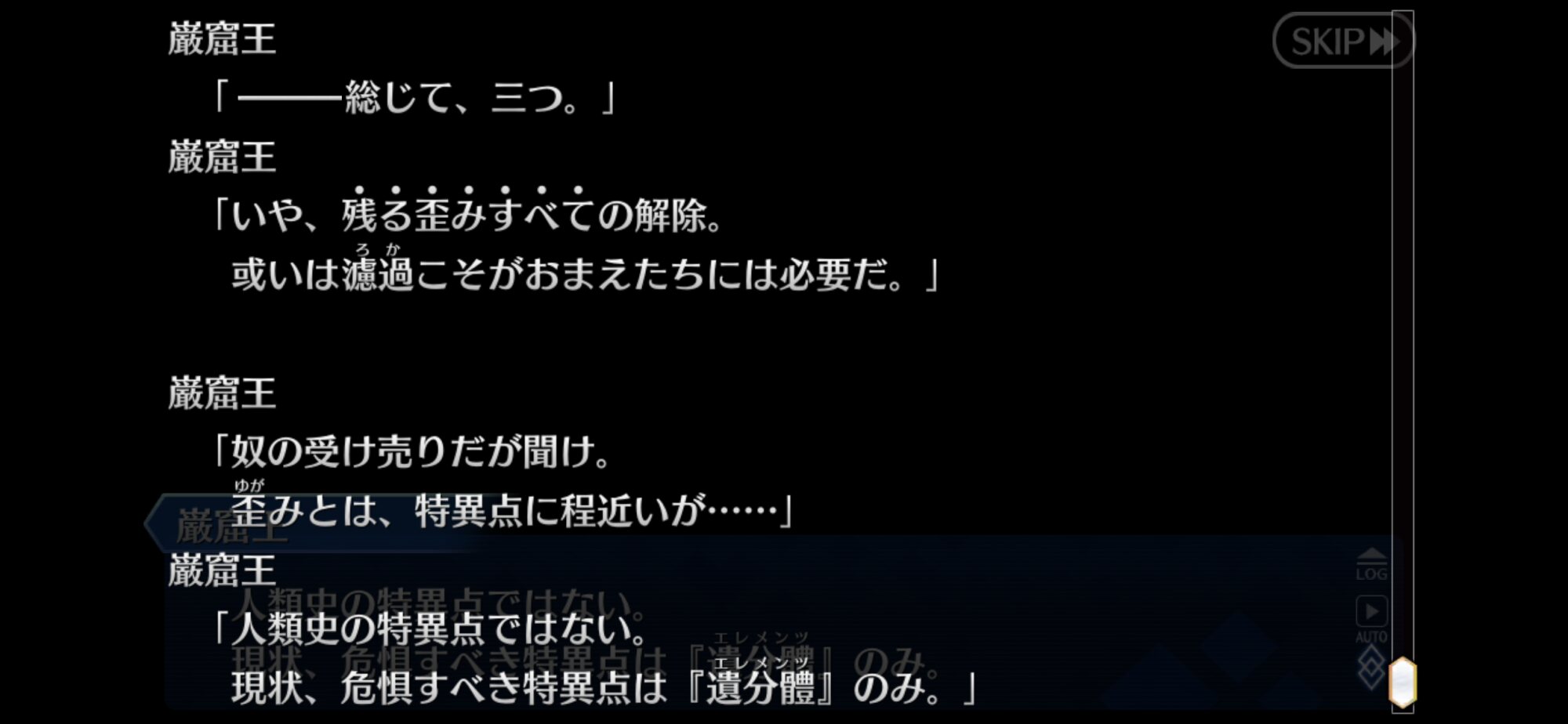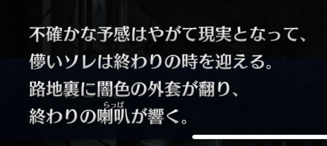 今回がアヴェンジャー章と仮定するなら消化されそうなワードは、残滓(ぐだの廃棄孔に溜まってるあれこれ)、炎(恐らくエドモンが使ってる恩讐の炎)、伯爵(モンテ・クリストか異星の使徒かは分からん)、罪と罰(復讐に関わる要素の中でもメジャーな奴)、東京(今回の舞台だけどきのこの発言的にひねりがありそう)、憎悪と嫌悪(復讐物の作品によくある復讐心と良心との葛藤的なニュアンスっぽい?)あたりかな?