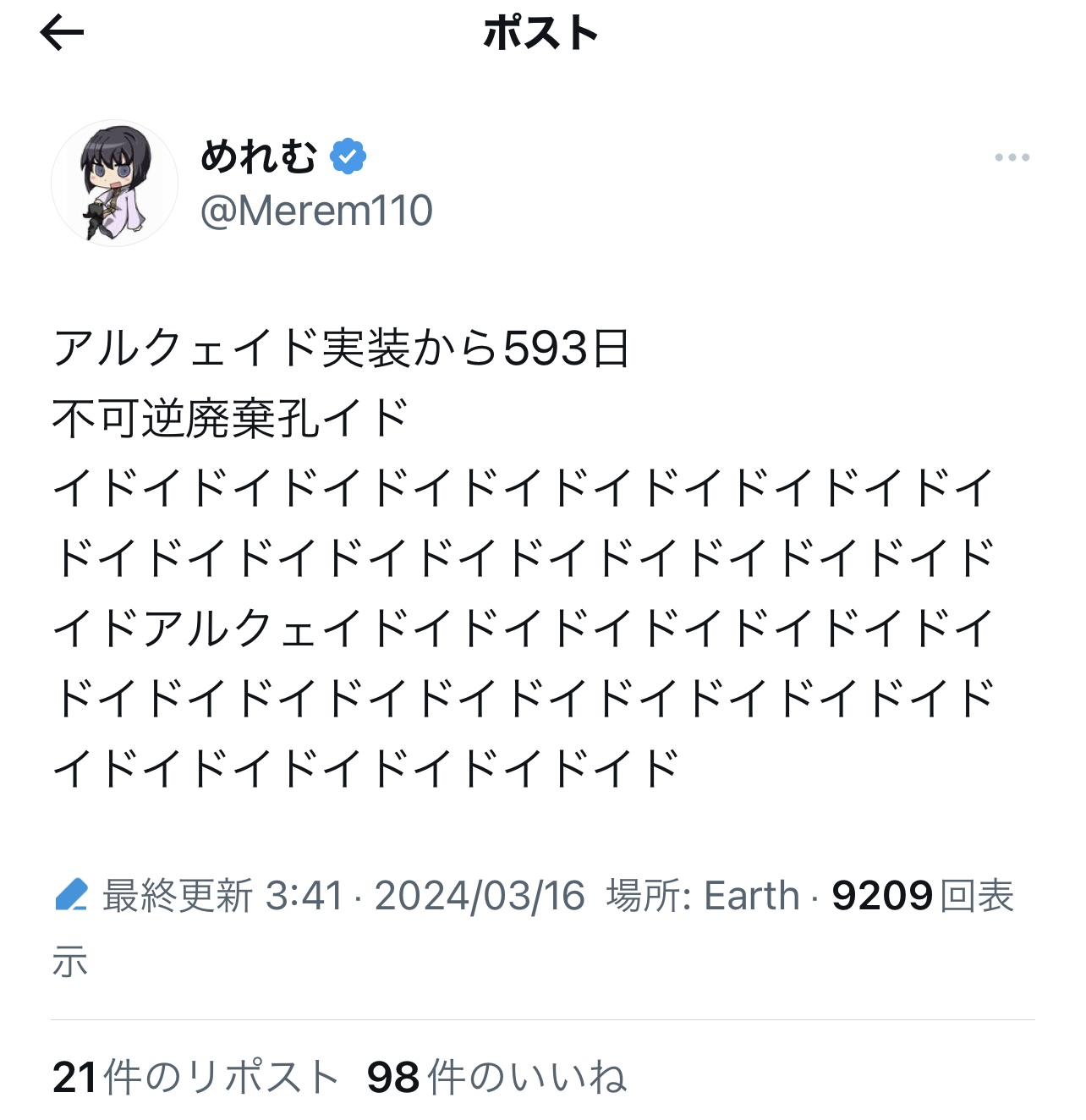 ついに重ね言葉みたいな話し方までしだしたのか、恩讐語(違)>>959