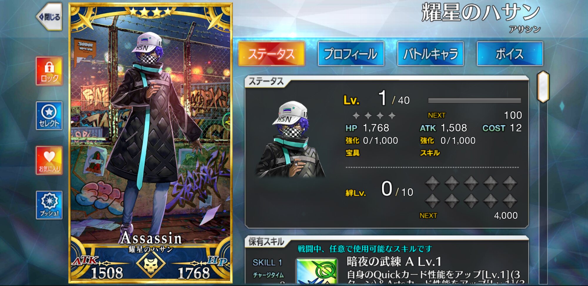 現代に溶け込むタイプのアサシンっぽくていいよね……宝具はめっちゃ輝くけどおっぱいなのか問題があるのはまぁラスオリ級だもんなリップ