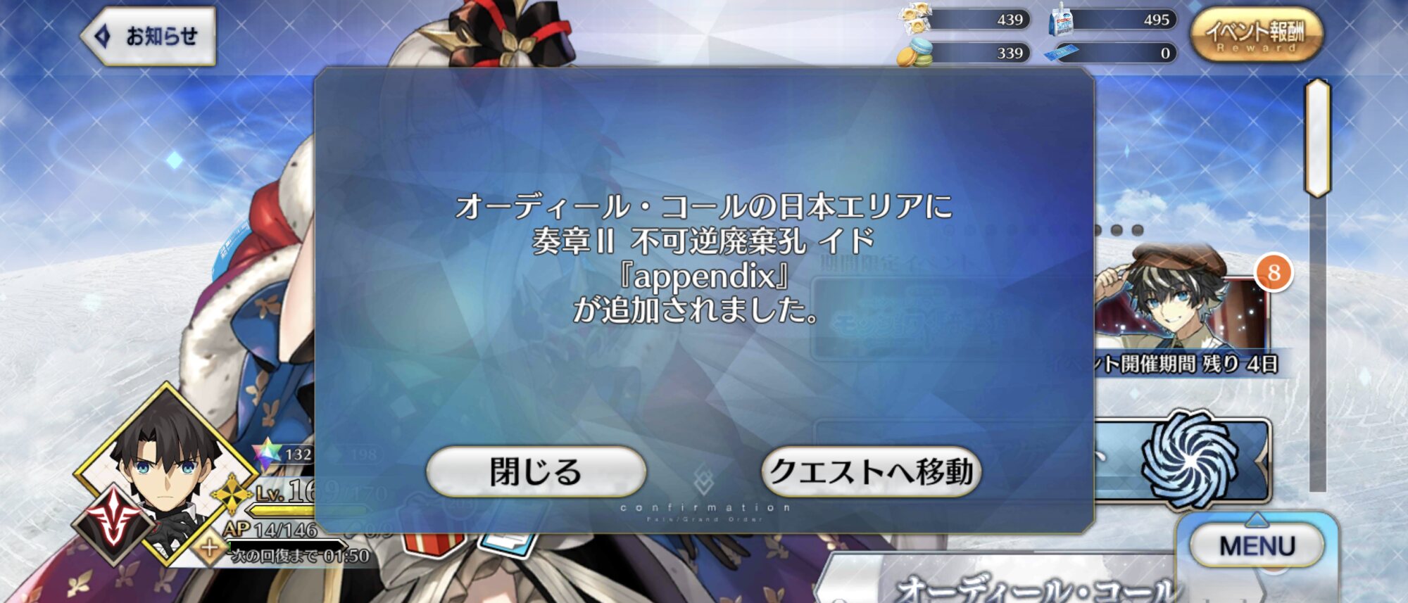 ※亜種特異点(ⅠからⅣまで)、メインクエスト第2部 第5.5章、第2部 第6.5章をクリアしている必要はありません。