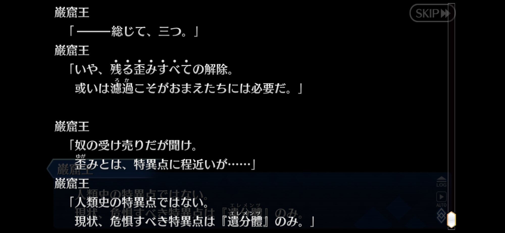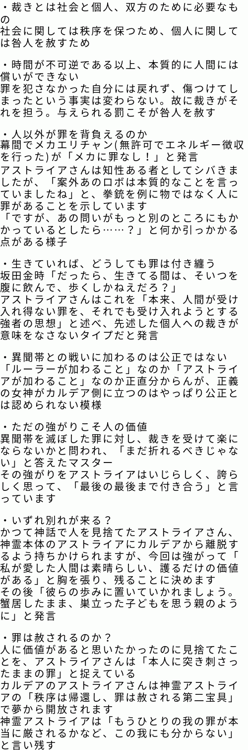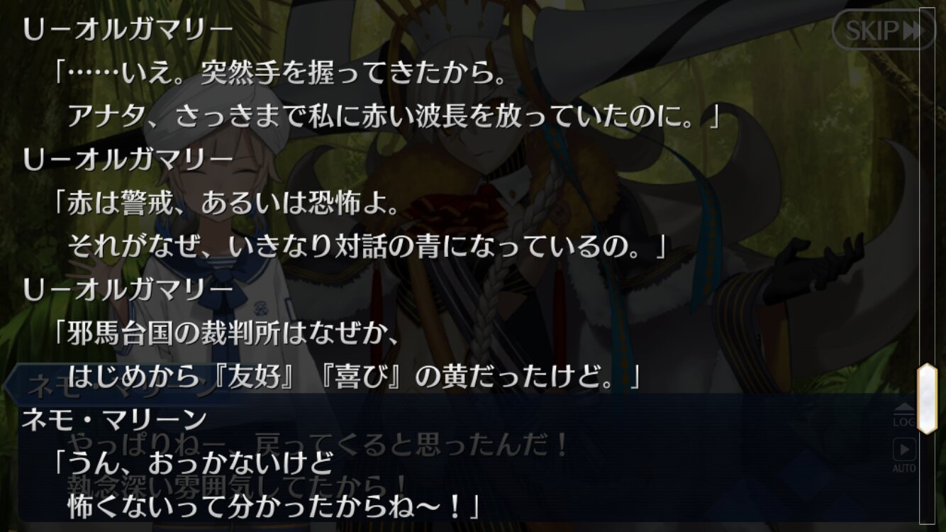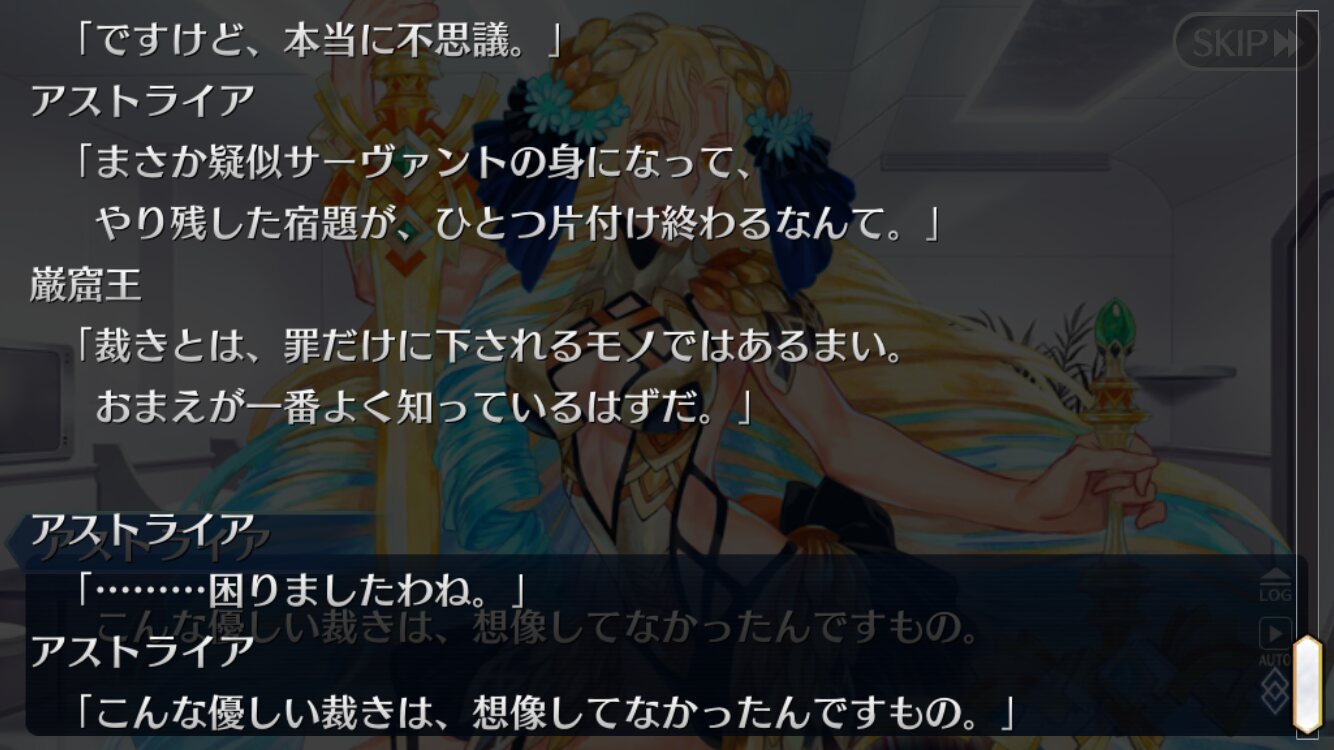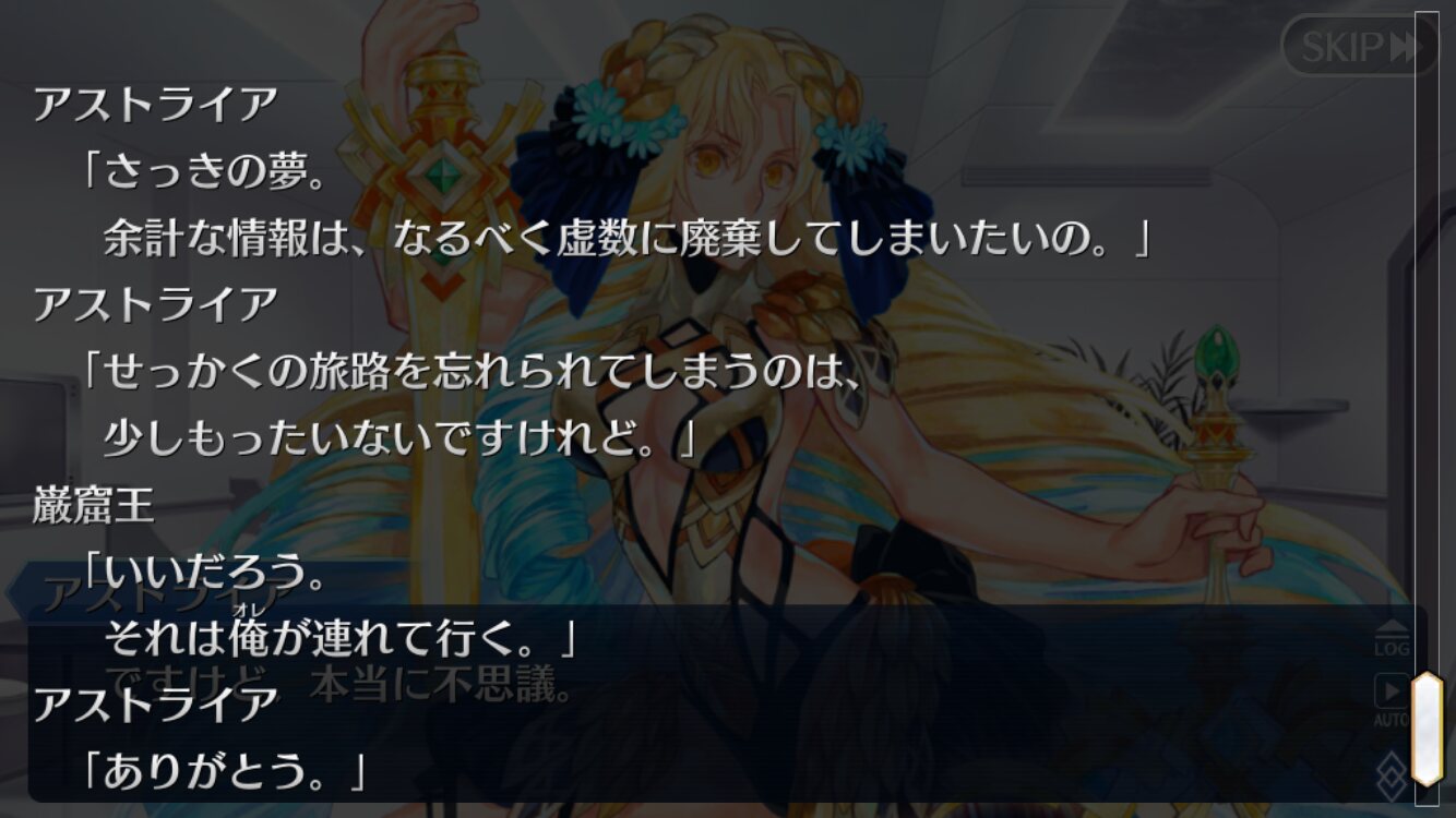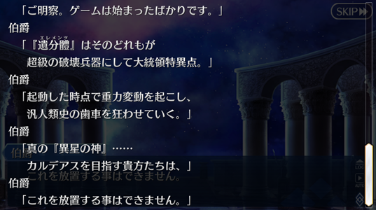 ところで讐理超克って、巌窟王たちのがんばりで本来トリスメギストスが提言していた表明、決別、宣誓、依託のルートから外れたという解釈でいいのかな? 本来アヴェンジャーを同行させるためには、ぐだが復讐者になる必要があるっていう話だったし(それが表明?)。もちろん考えすぎかもしれないけど、そうだったらさらに好きなシナリオだ。・・・
