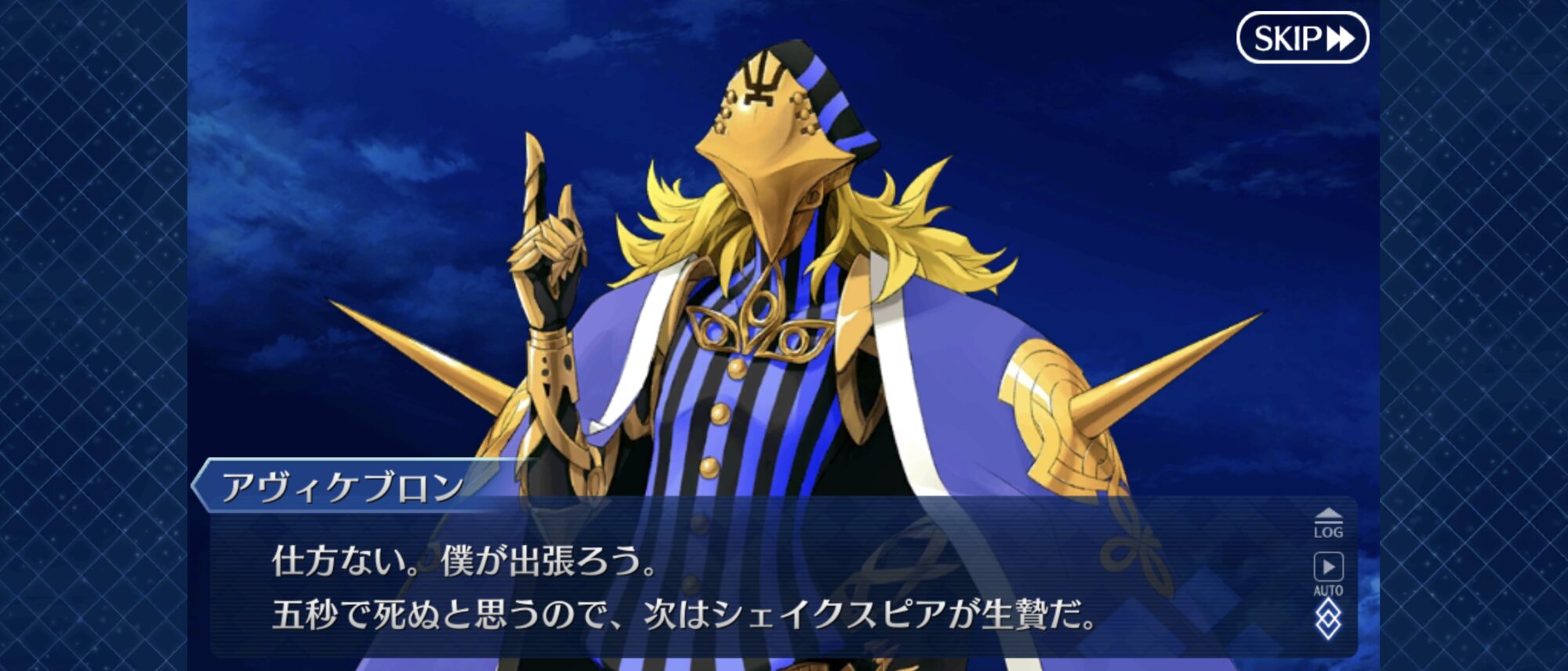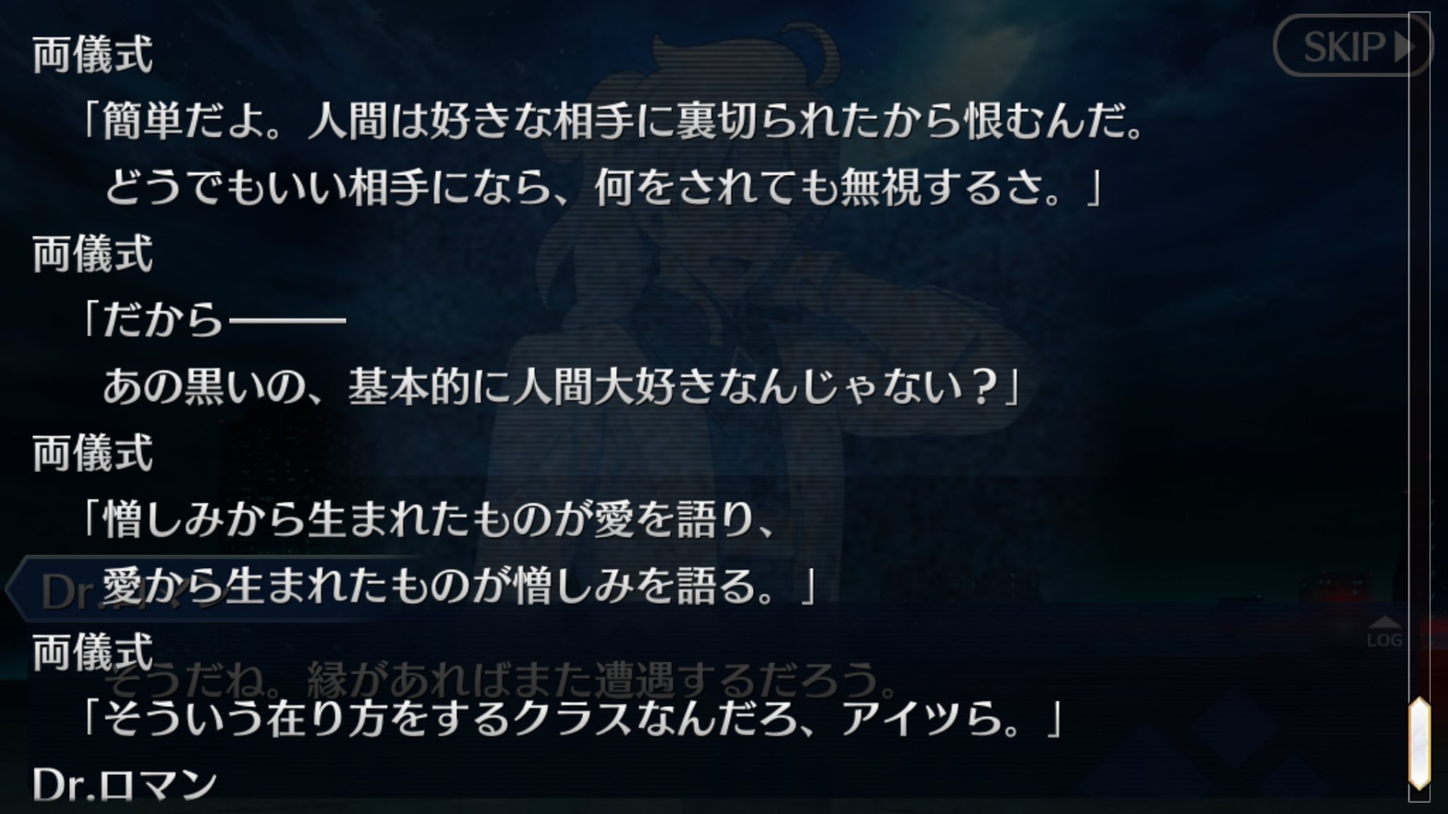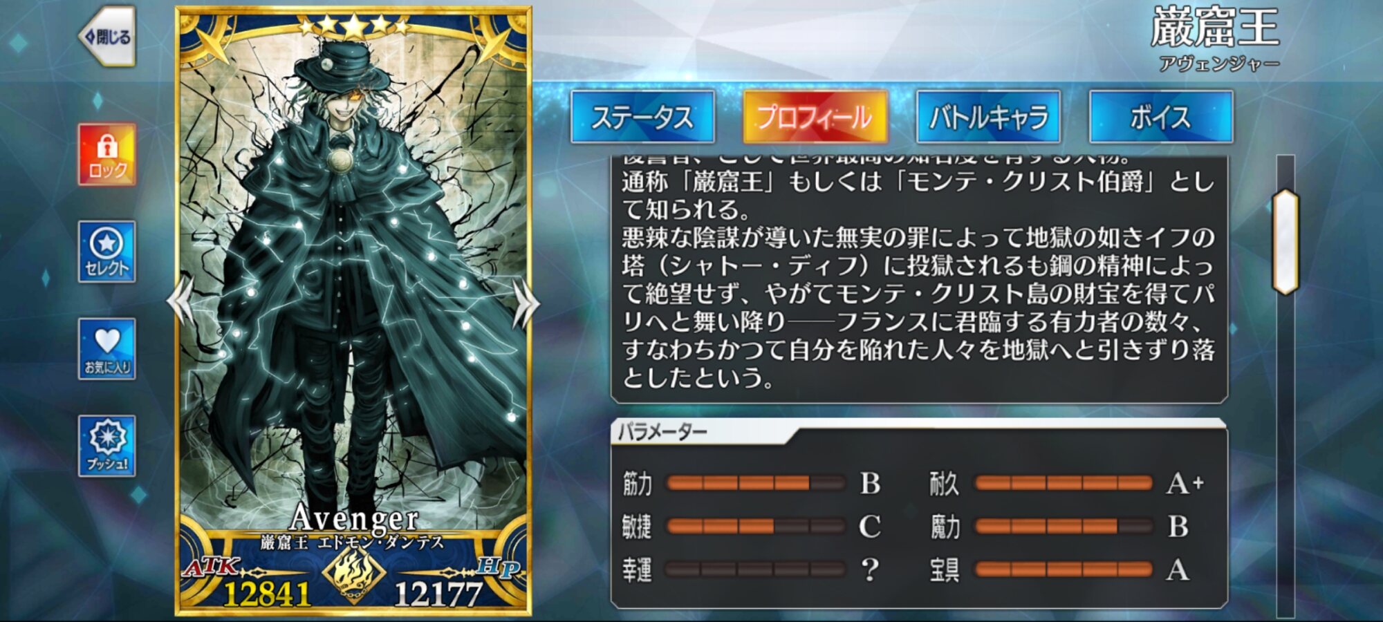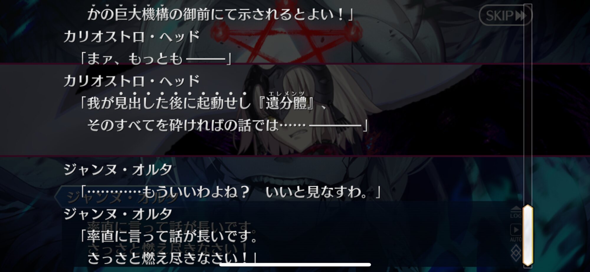 「昔の記憶のなかで自分は復讐者を知り、そうなるかならないかを決めた。みんな、自分を応援してくれた。」式神のリンボと同じだから元のカリオストロ知ってそうなのが巌窟王辺りになるのかな因縁的に
