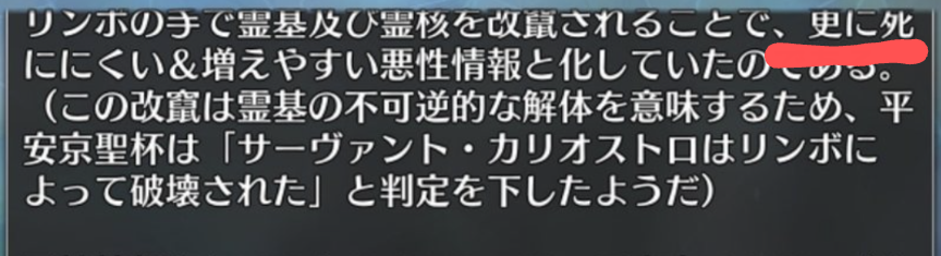天寿の概念はあくまで形式のひとつで、死の匂いとして染み付いてしまったのは「白紙化地球で神を倒し得る汎人類史ただひとりの人類」っていう概念が必然的に増強されるから、つまり「バレル使用の後遺症(表面上)≒レコードホルダー化(本質)」みたいな>>923