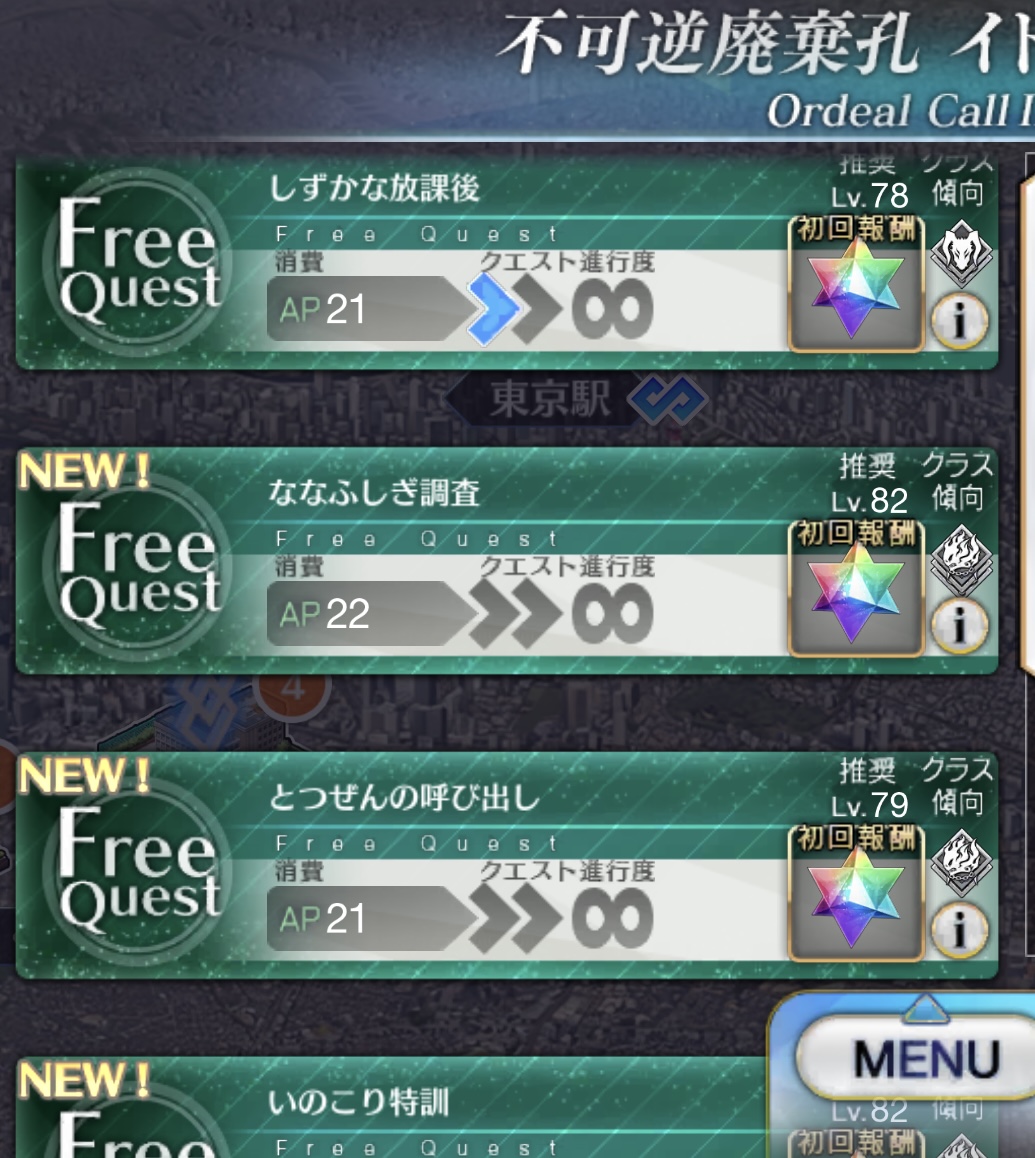 ※亜種特異点(ⅠからⅣまで)、メインクエスト第2部 第5.5章、第2部 第6.5章をクリアしている必要はありません。
