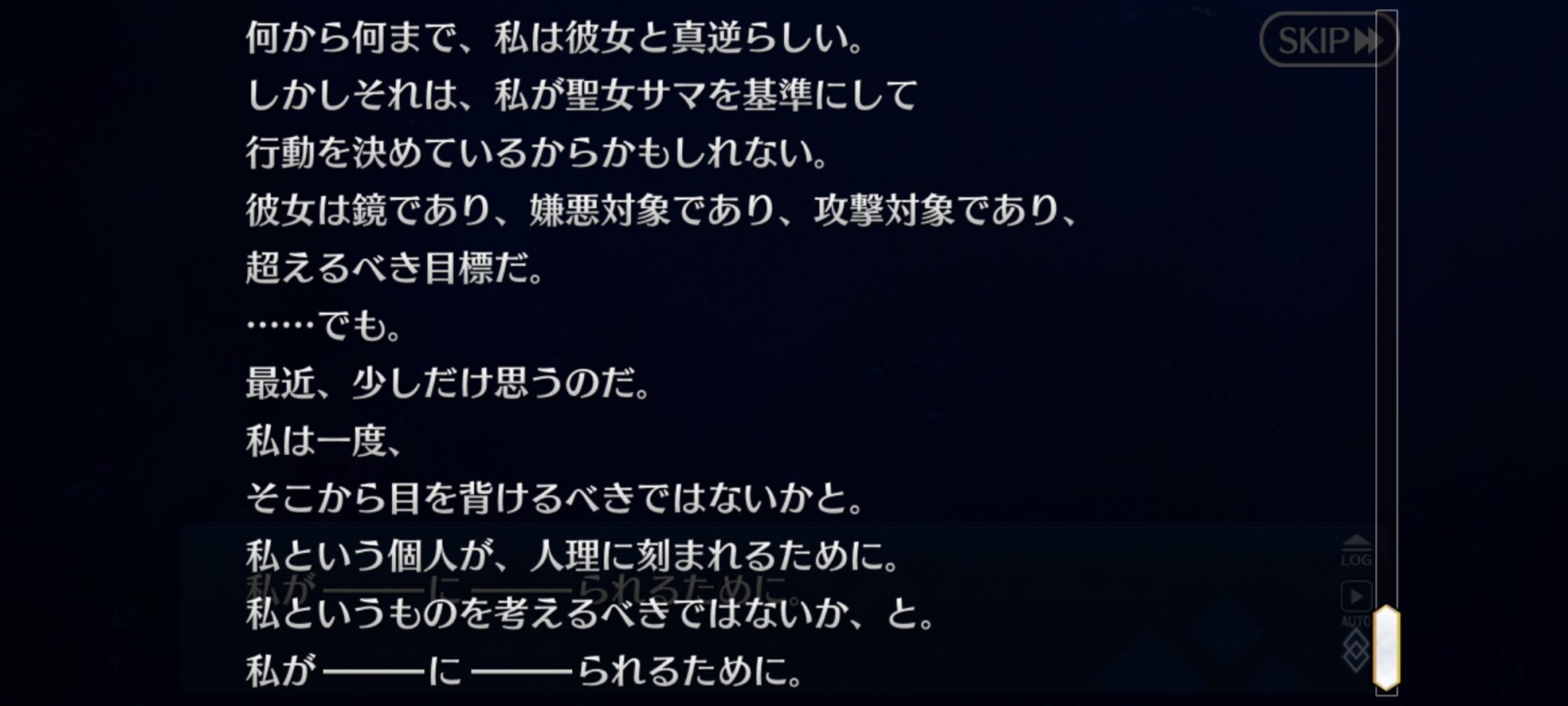 サリエリの状況に悲しみを滲ませる声なのとか、自分に聖杯を捧げるべきじゃないとこっちを咎めてきたりとか、ちょこちょこ言わないと思ってたこと言ってきてギャップがヤバい
