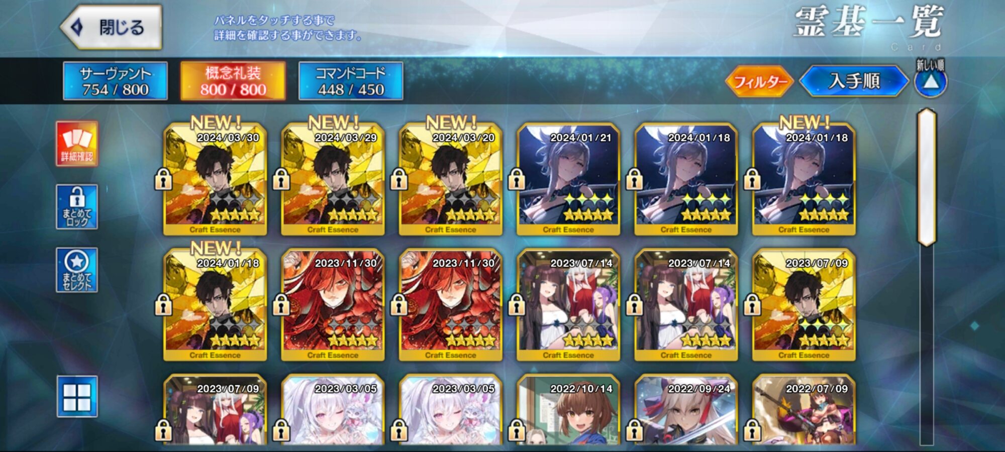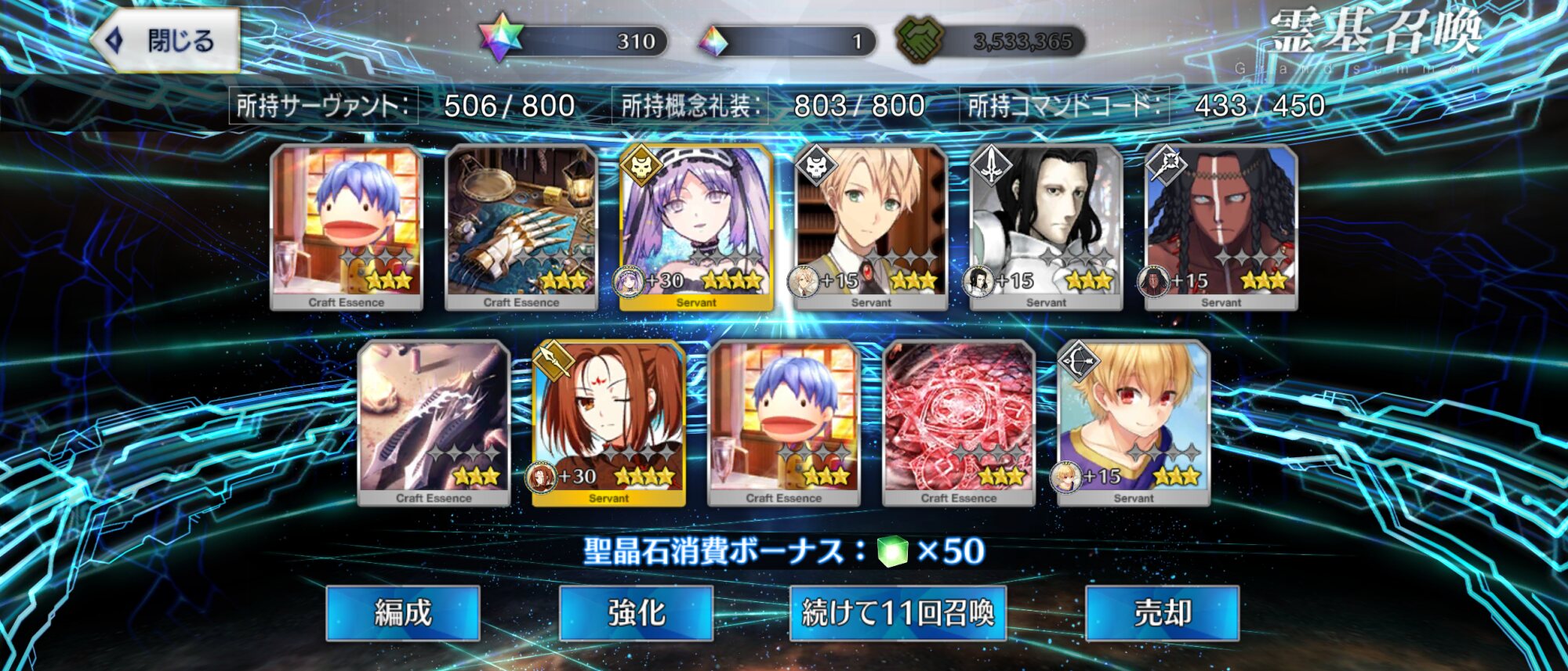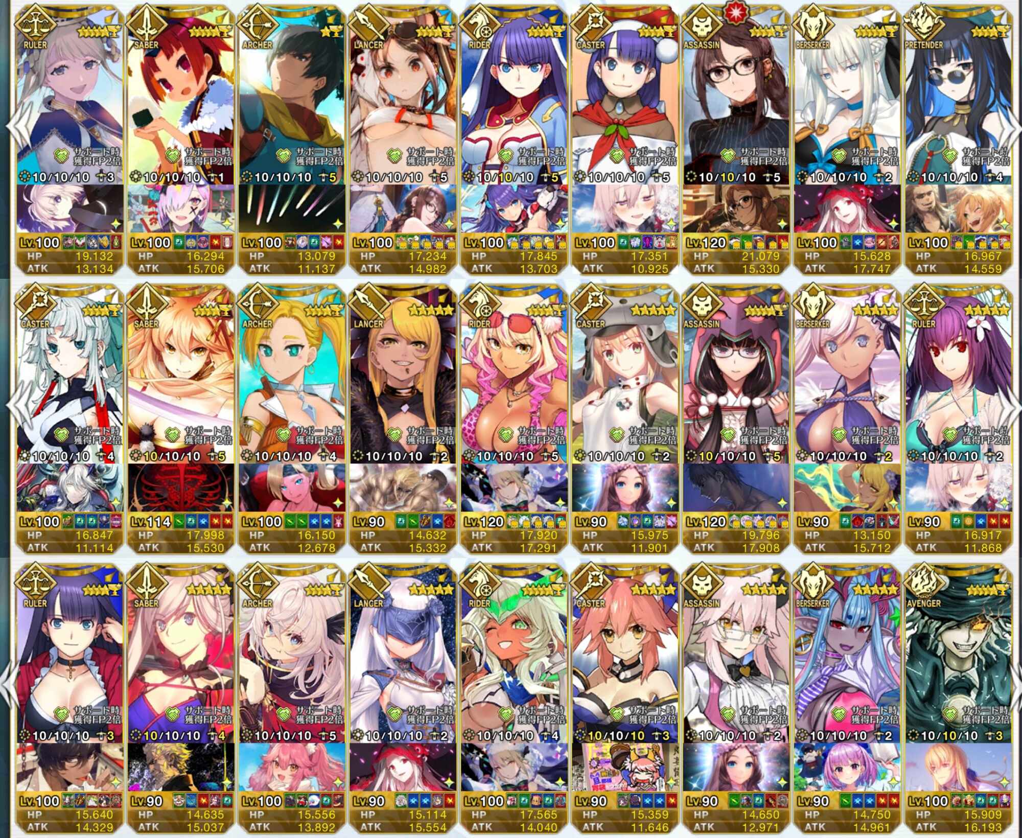 (別にちゃんと使ってるの以外は育ててはないけどなんとなく今までフレポで来たのをずっと残し続けてる。ちなみに育ててあるのだけは最初に姫君とピックアップされてた時に来たやつ(その時に宝具も5になった))>>20