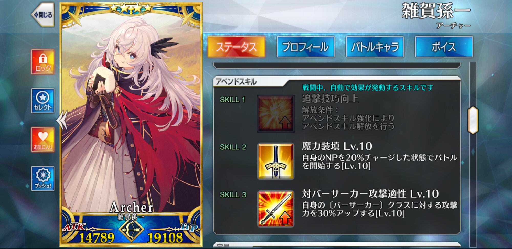 二世の見た目かっこいい1臨に固定しつつ、防御力変わらずに息苦しい思いさせるのは心苦しいなと思ったんだけど、いつか機能に気が付かせるという名目ができた悲しみ(イアソン捕食)を繰り返し漁師はどこへ行くのだろう