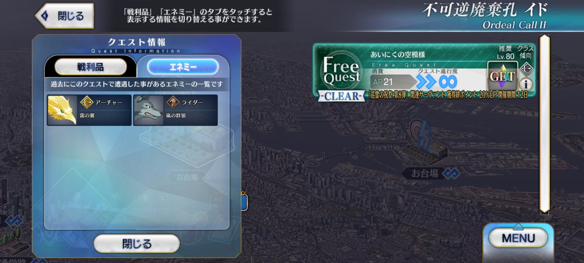 パイセンがバスターとクイックってわかったから水着ではその2つをバフって来たりして……?東京の地下とか下水とか何か住んでても気付かんよね実際