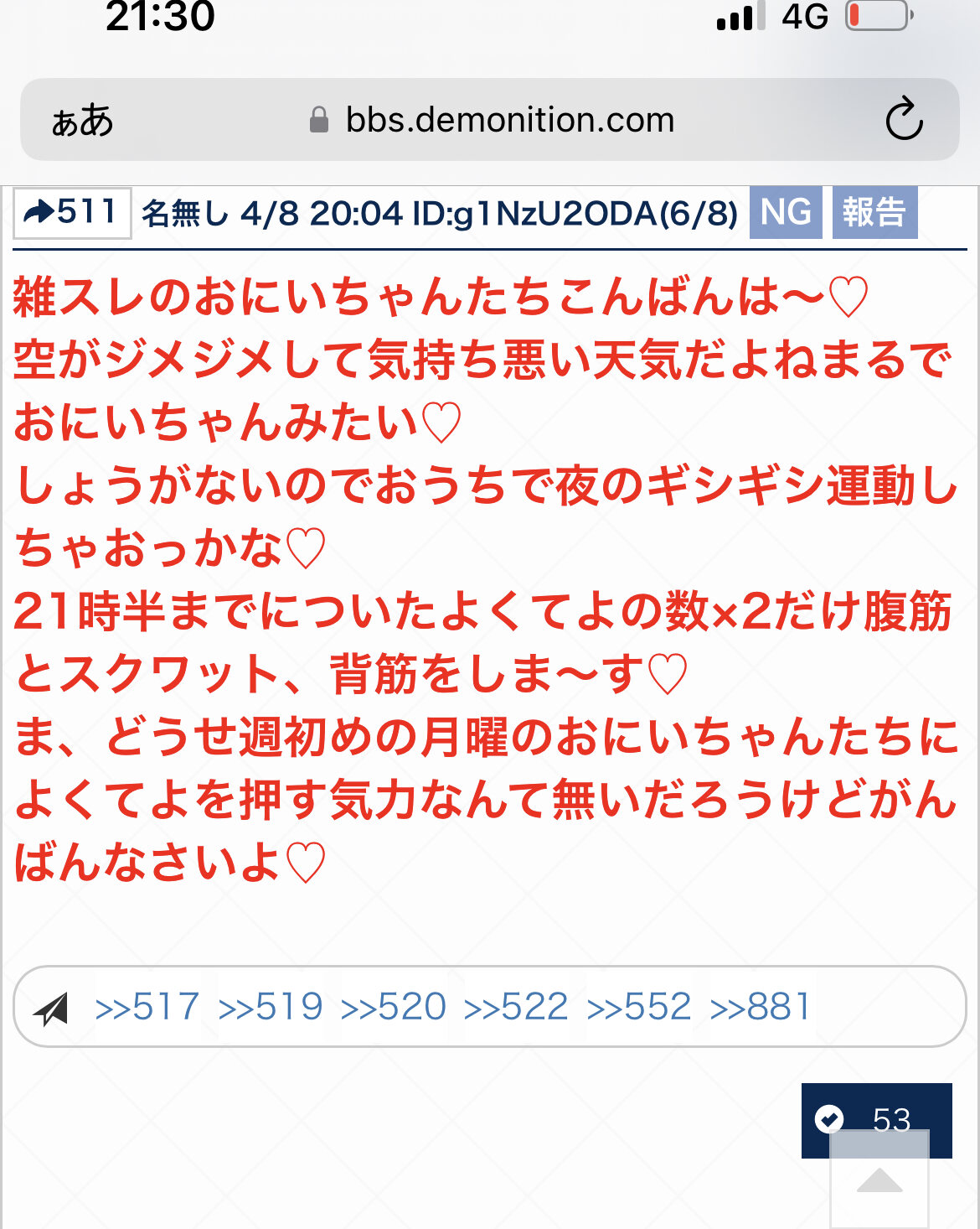 足腰ばっかだなって思ってたんだ。腕立て伏せも追加しない?>>71