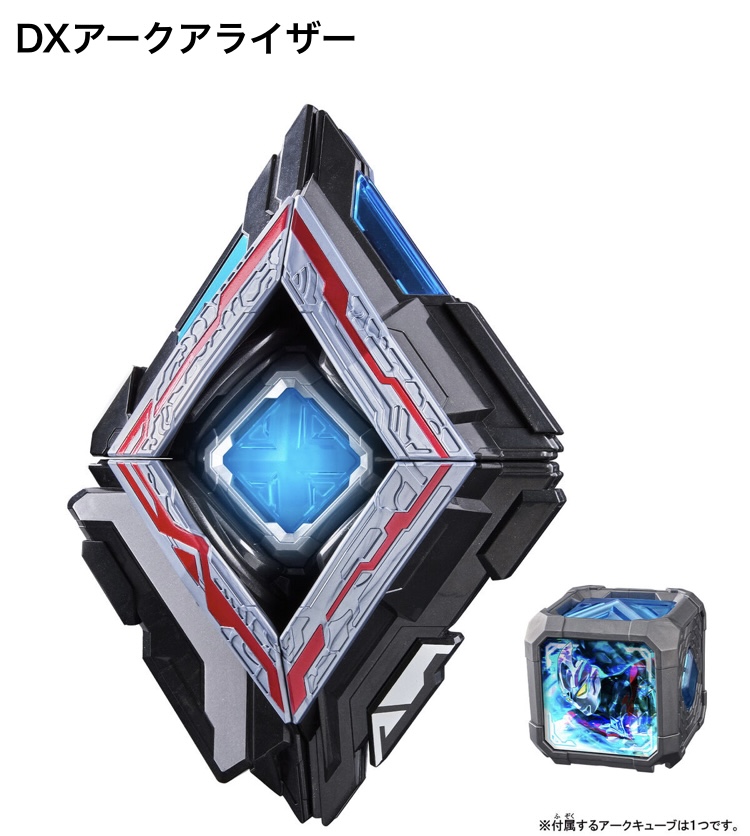 アークの変身アイテムのアークキューブは音声ユニット内蔵で個別認識ピンも付いている、トリガーのガッツハイパーキーとかと同系のタイプか。