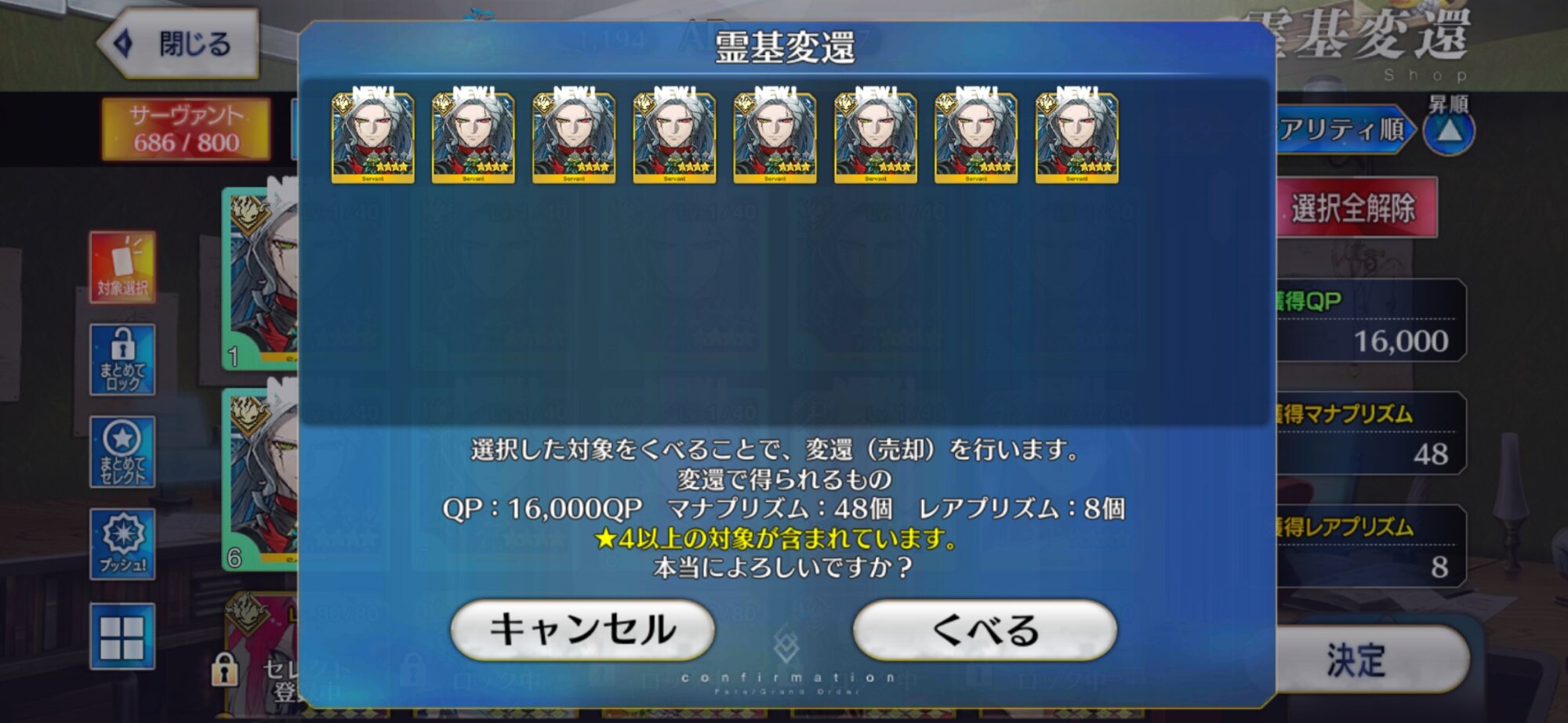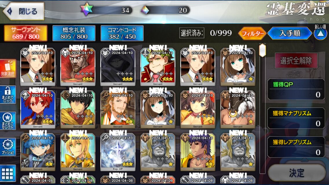アイテム一覧の位置が配布鯖の再臨素材の前にいるから