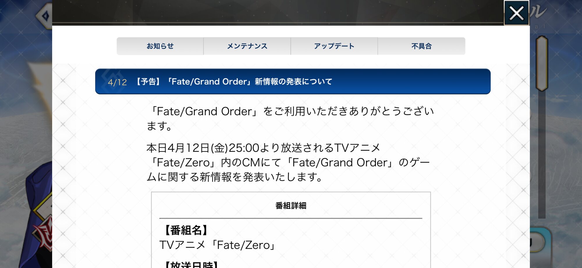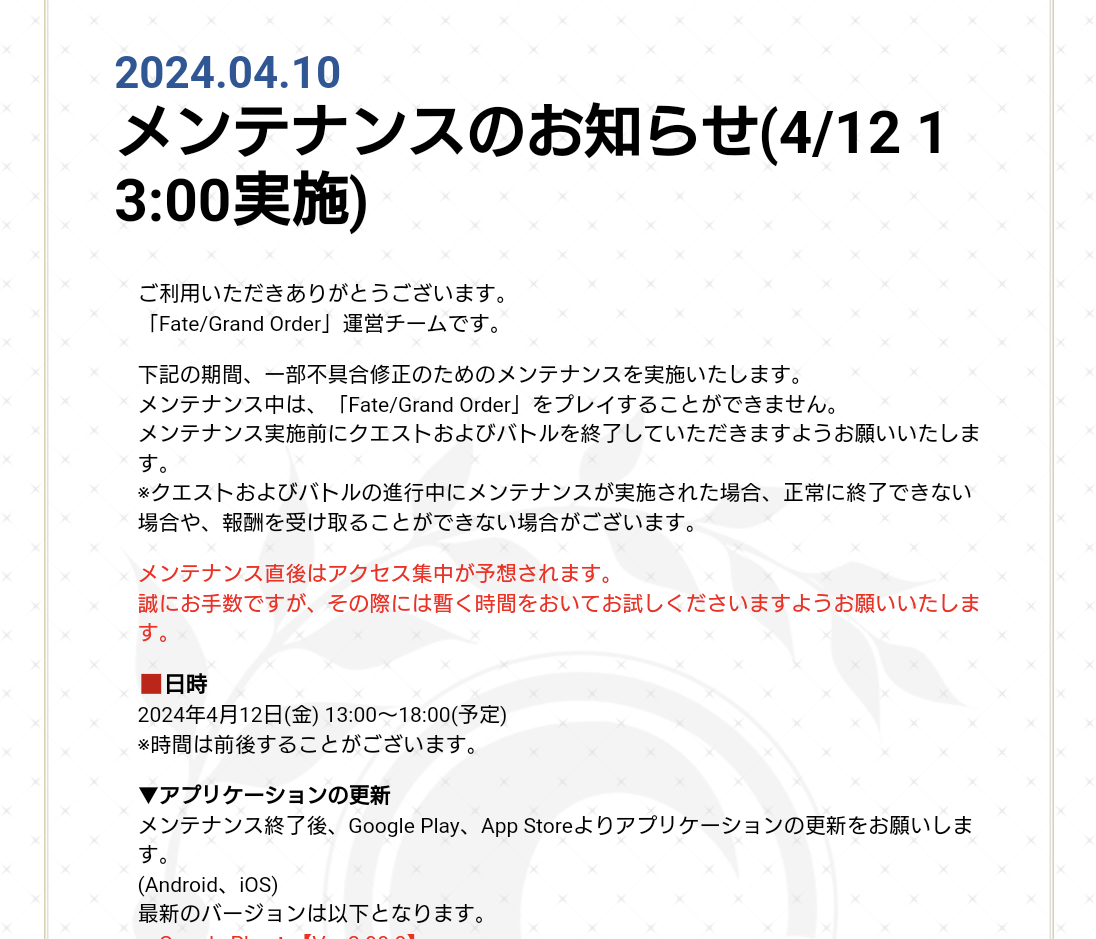 「新情報」って記載があるから、メンテ後に開幕しそうなオルガマリークエストでは無いなコレ
