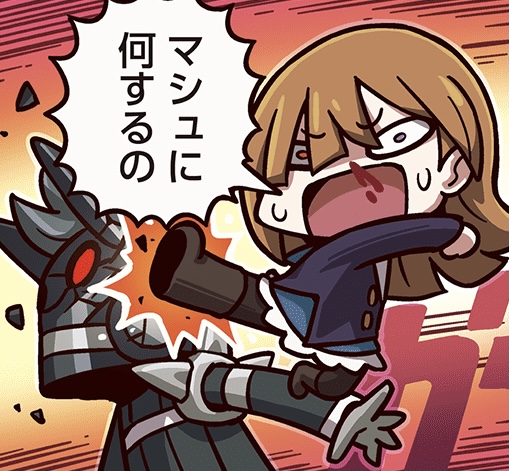 冒頭でなぜか赤ん坊を抱いたぐだが組織に追われてて、それを指揮してるのがオルテナウス装備のマシュなやつ>>38