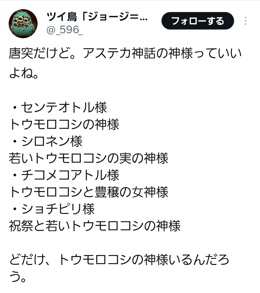 なるほどモロコシさん、ニスターの弟子キャラやってるつもりでいつの間にか完全オリジナルの怪物になっていて、たぶんこれ私を含む気ぶりスレ民全員が可能性の獣に養分与えすぎた結果なんですよね。この畑は我々が肥やし、そして実った
