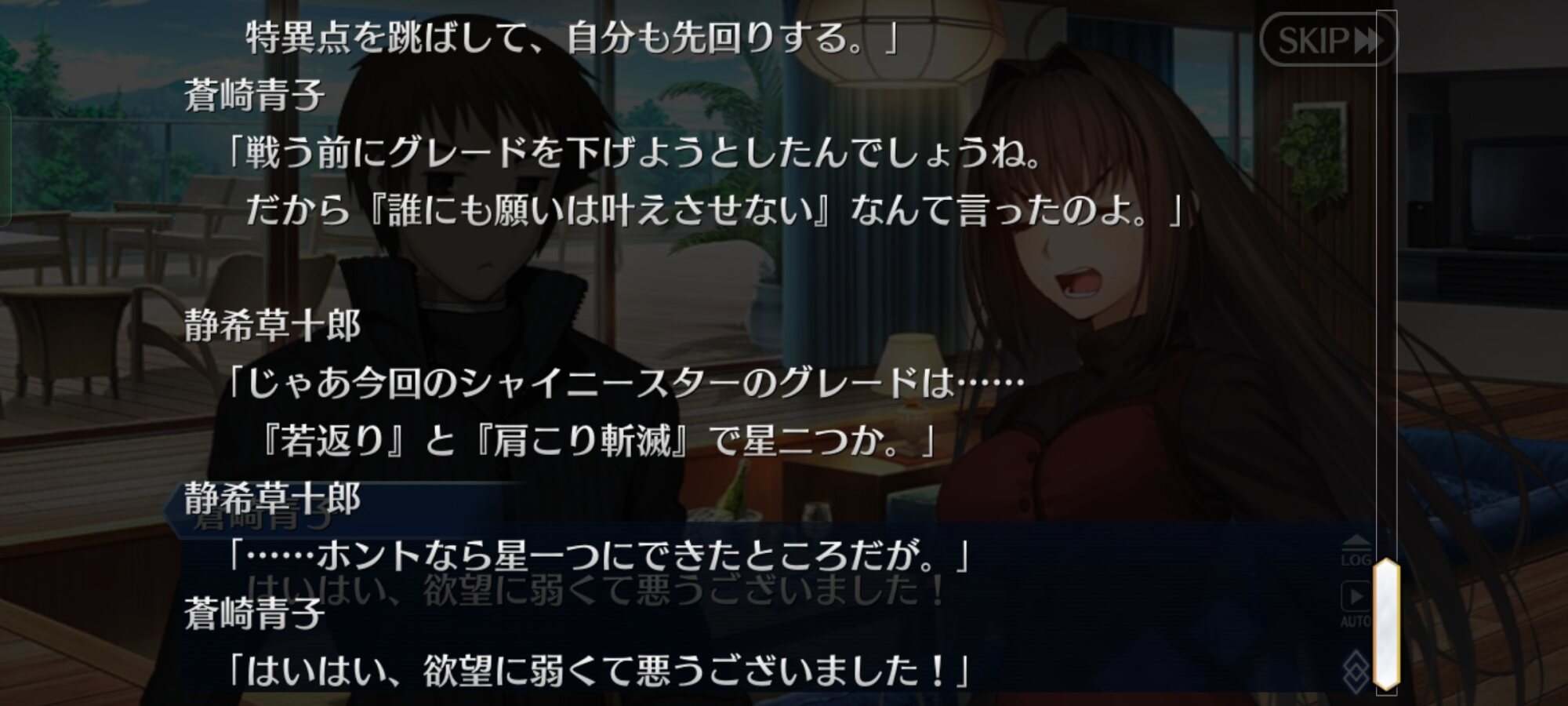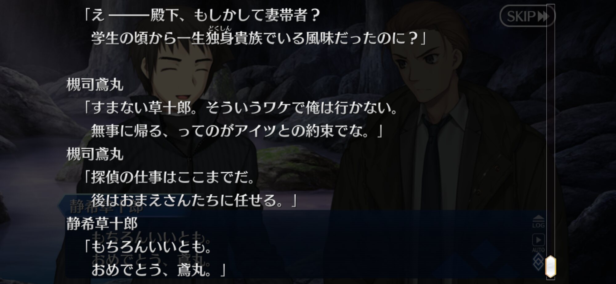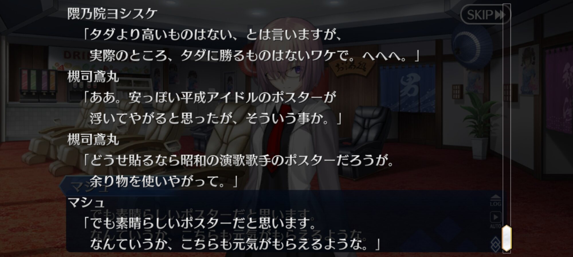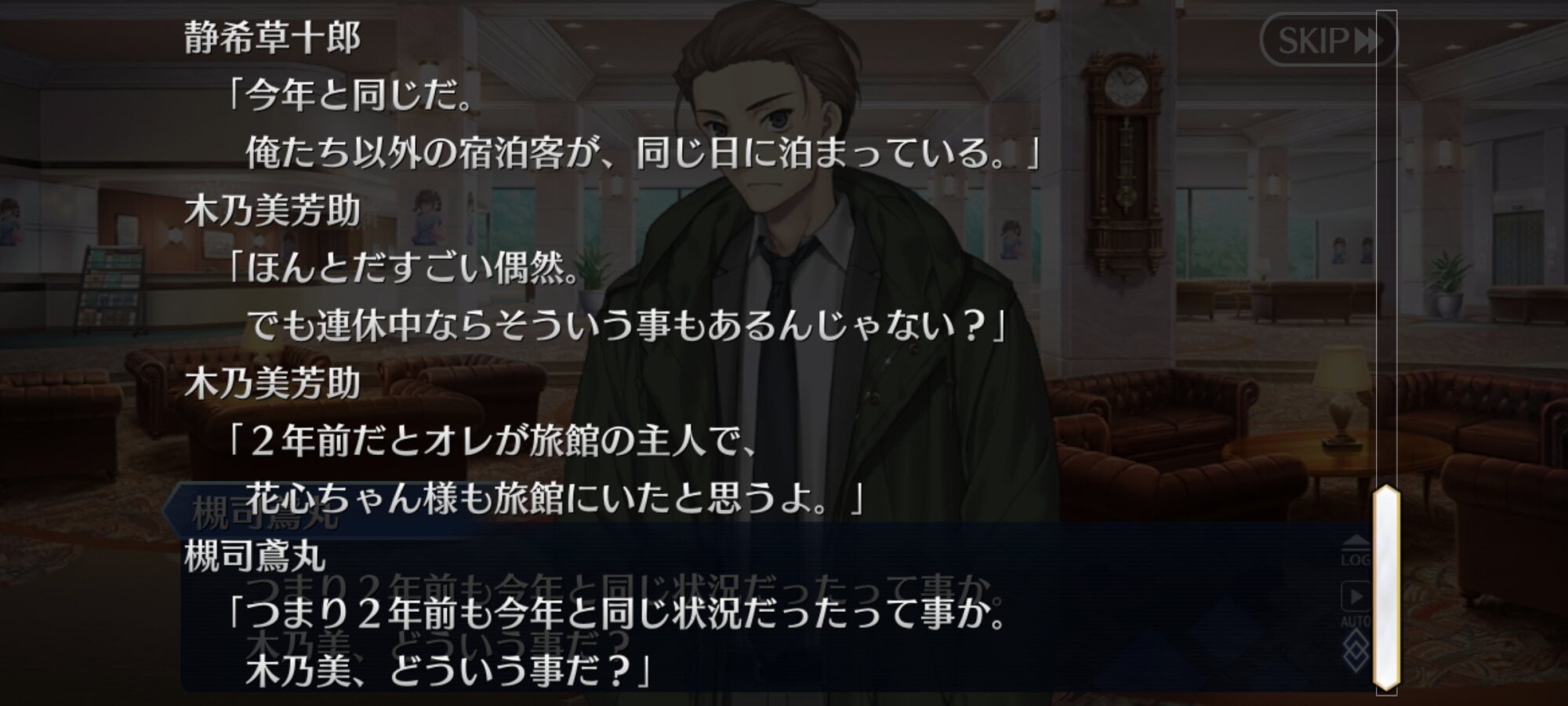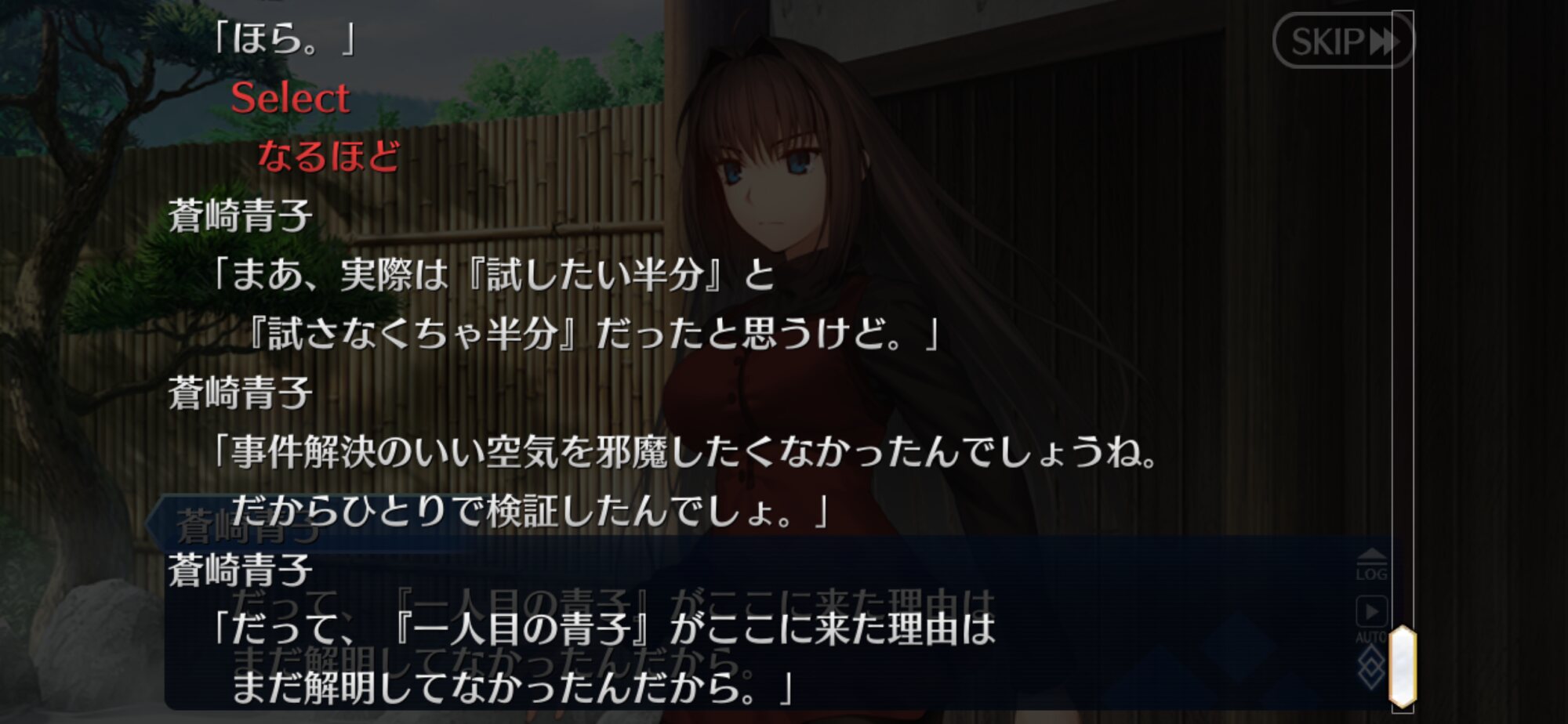 芝生ってなんやねん、シバ(カルデア側)の、ね士郎さんを椿の間に通したのはあわよくば怪異を払ってもらえるか士郎なら大丈夫と軽く考えていたんだろうな。あるいは青子さん達がいるからもしもの時も大丈夫とか。いい塩梅なろくでなしっぷり嫌いじゃないな