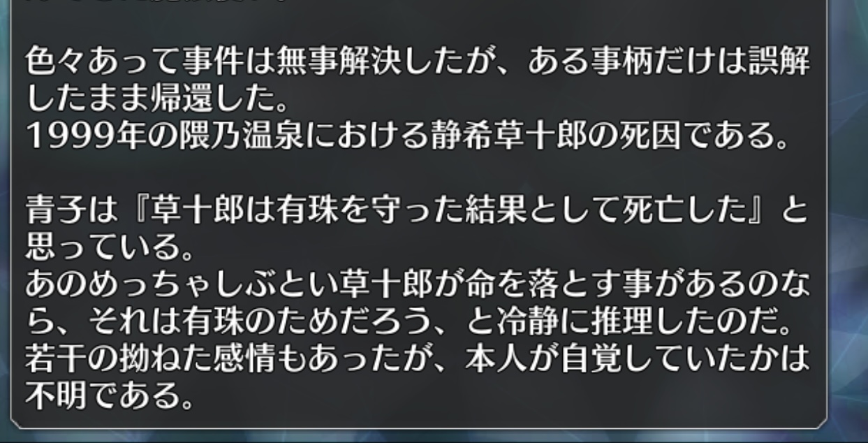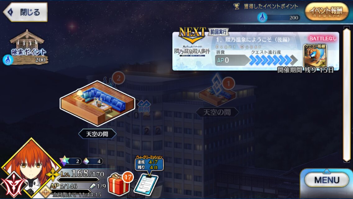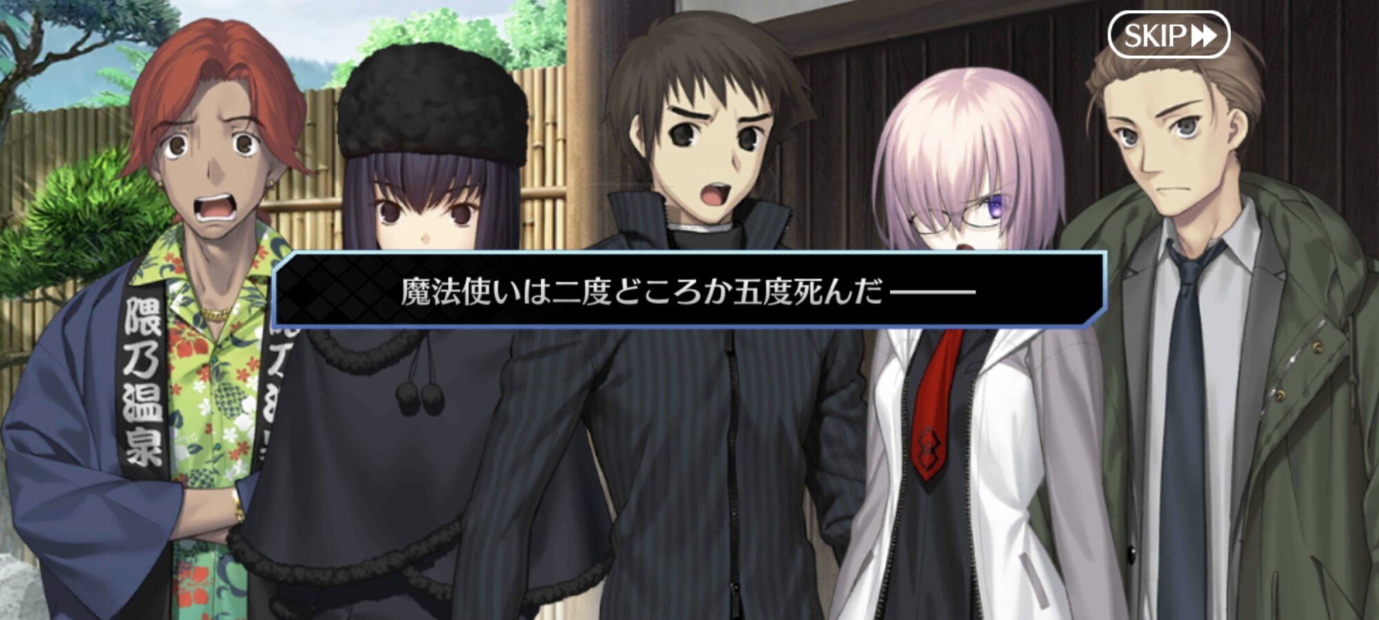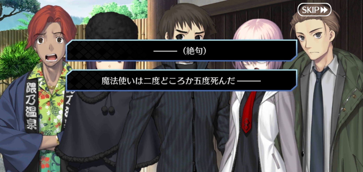魔法使いの夜×Fate/Grand Orderコラボレーションイベント「魔法使いの夜アフターナイト 隈乃温泉殺人事件 〜駒鳥は見た!魔法使いは二度死ぬ〜」の専用スレッドです。