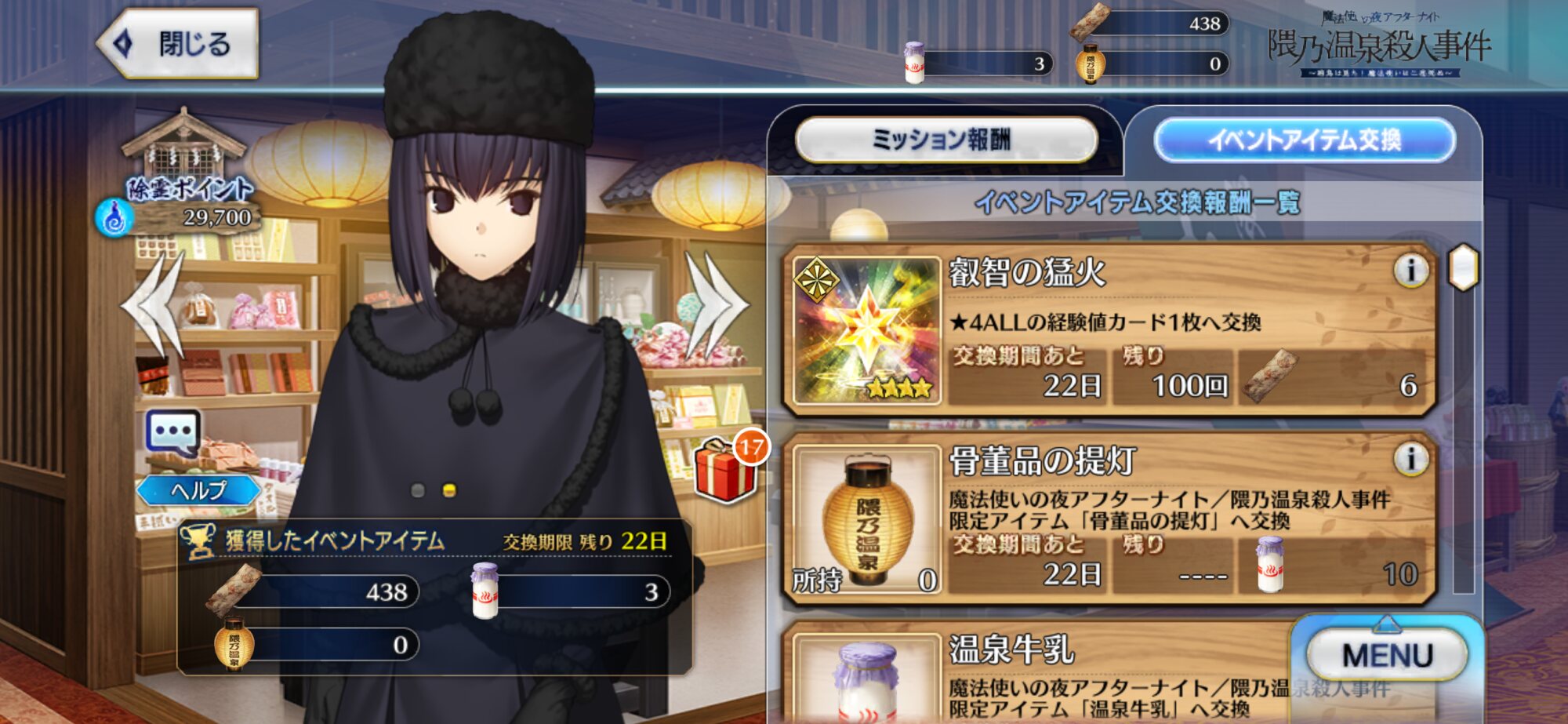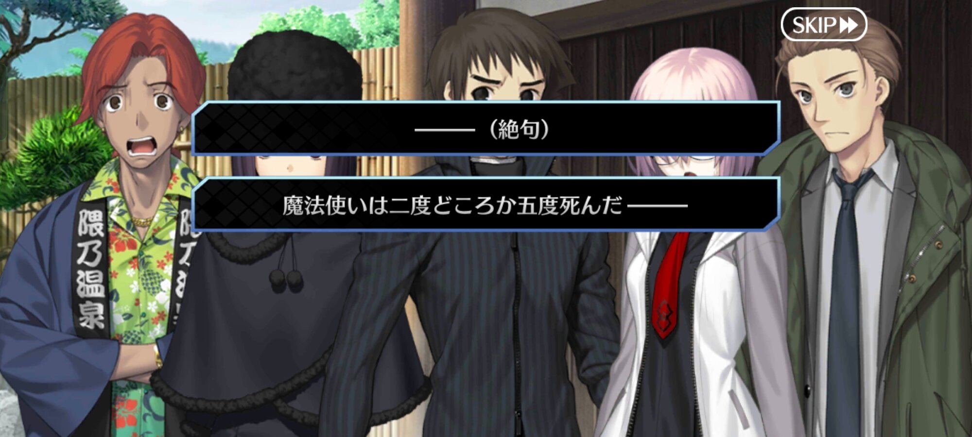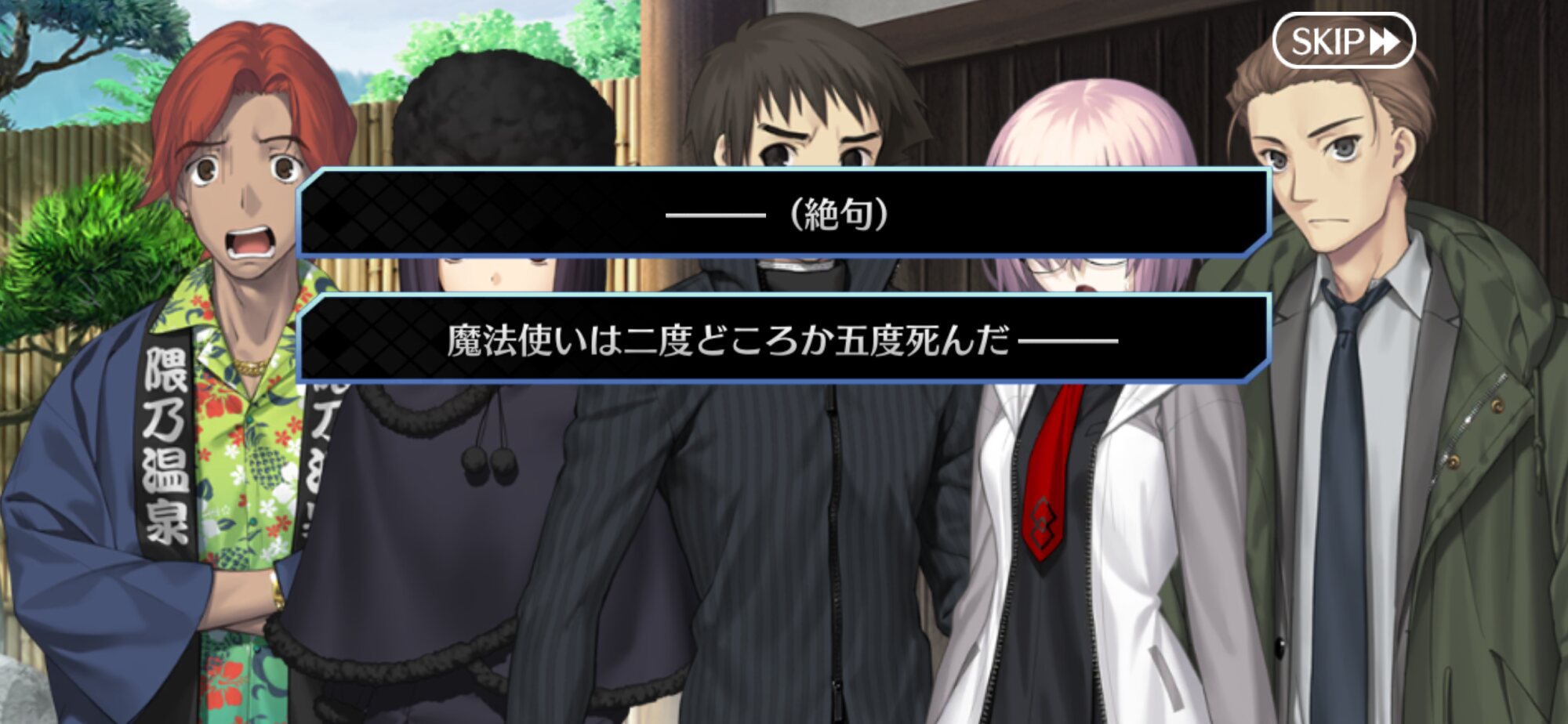 魔法使いの夜×Fate/Grand Orderコラボレーションイベント「魔法使いの夜アフターナイト 隈乃温泉殺人事件 〜駒鳥は見た!魔法使いは二度死ぬ〜」の専用スレッドです。