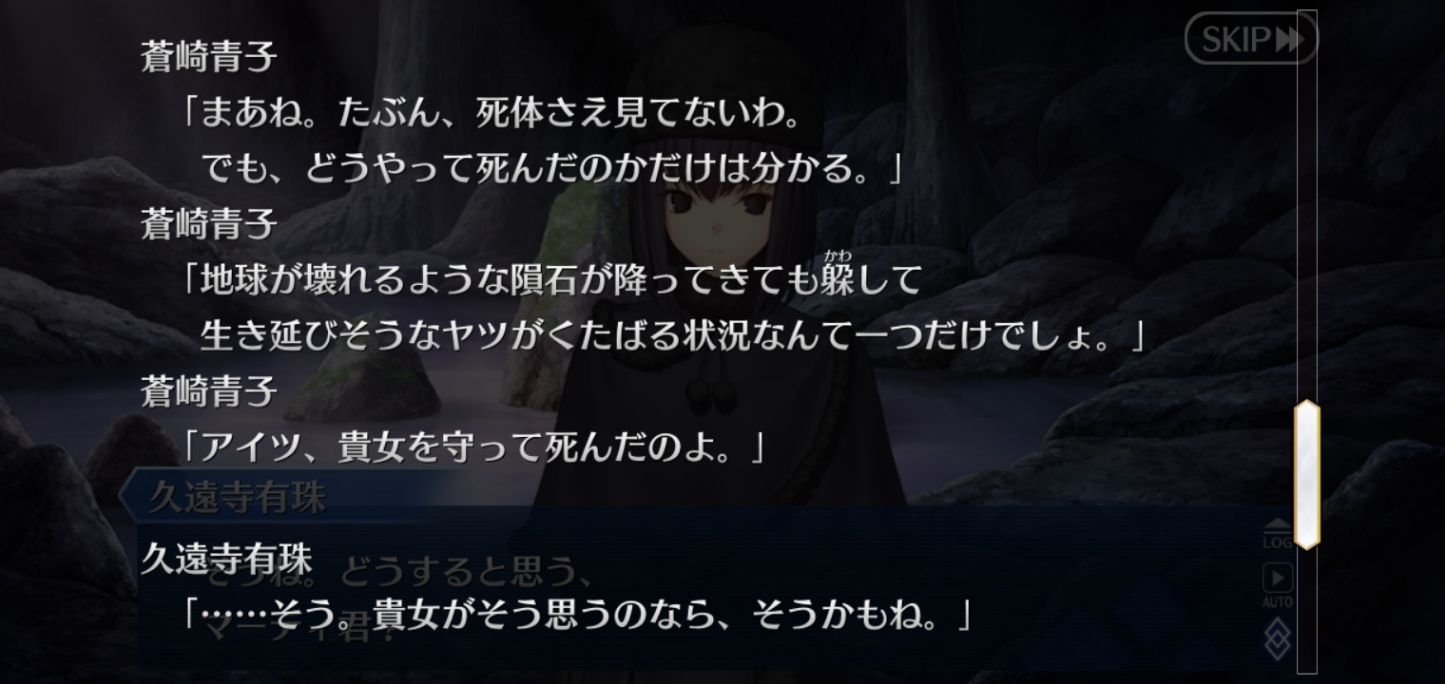 個人的にfgoは性能よりもキャラの魅力でガチャを回す節があるから、何か同士が増えたみたいで嬉しいわ。いやぁ良いシナリオでした