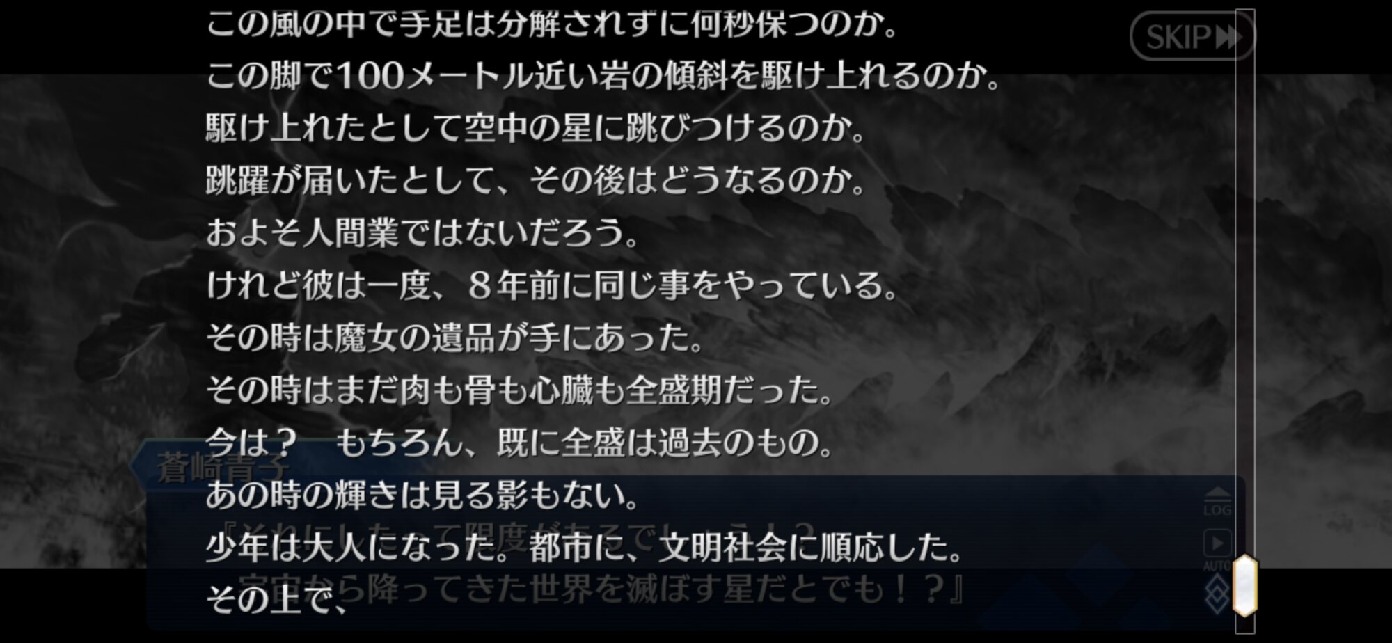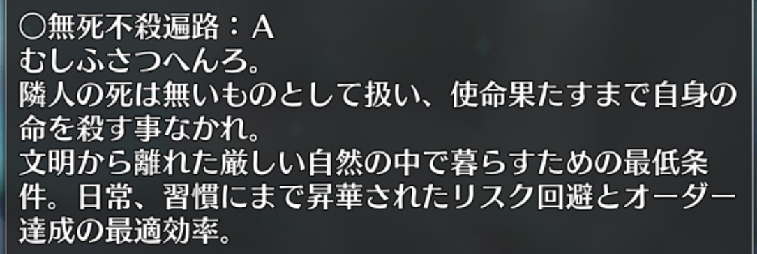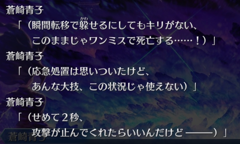 (特攻対象に両儀式(殺)が居ないのも”可能性を掴んだから”とすると、なんとなくあう気がして)なぜか「山のような仕事に」が癖になる