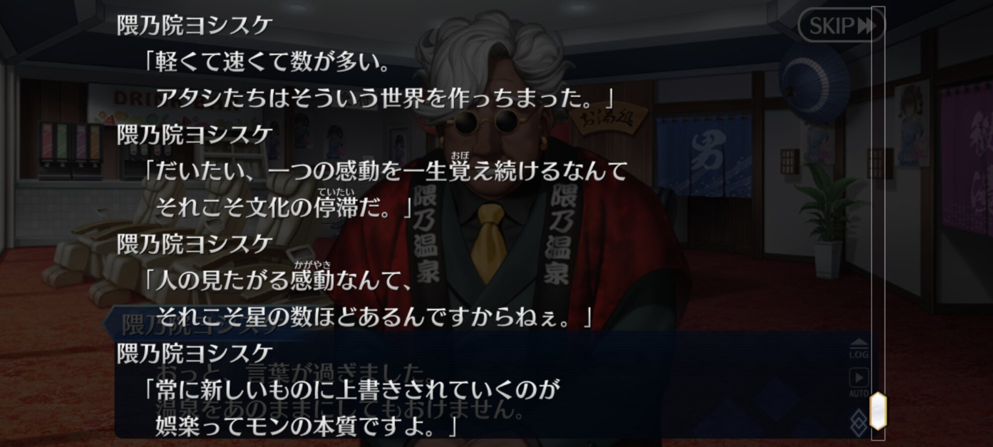 ・式(精神サイド)、そこまで散財するかなぁ…?(刀はともかく、高額な温泉予約を自分から…?)