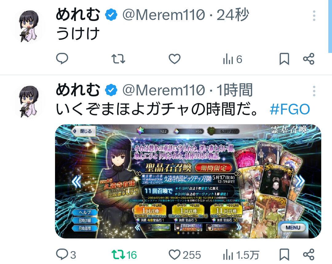 ところで今回のイベントの配布サーヴァントの性能見て「あぁfgoも終わりに近づいてゐるのだなぁ」と思ふなり>>54