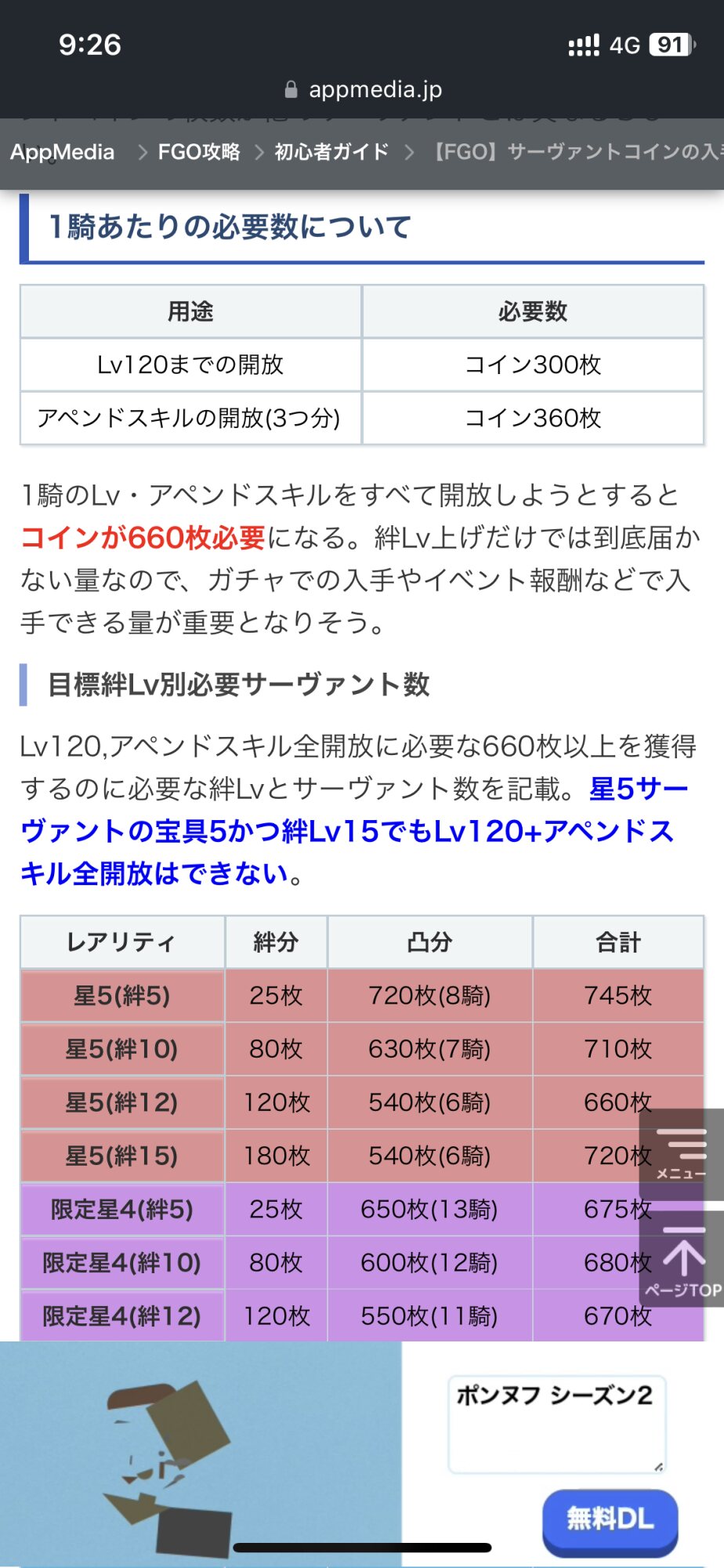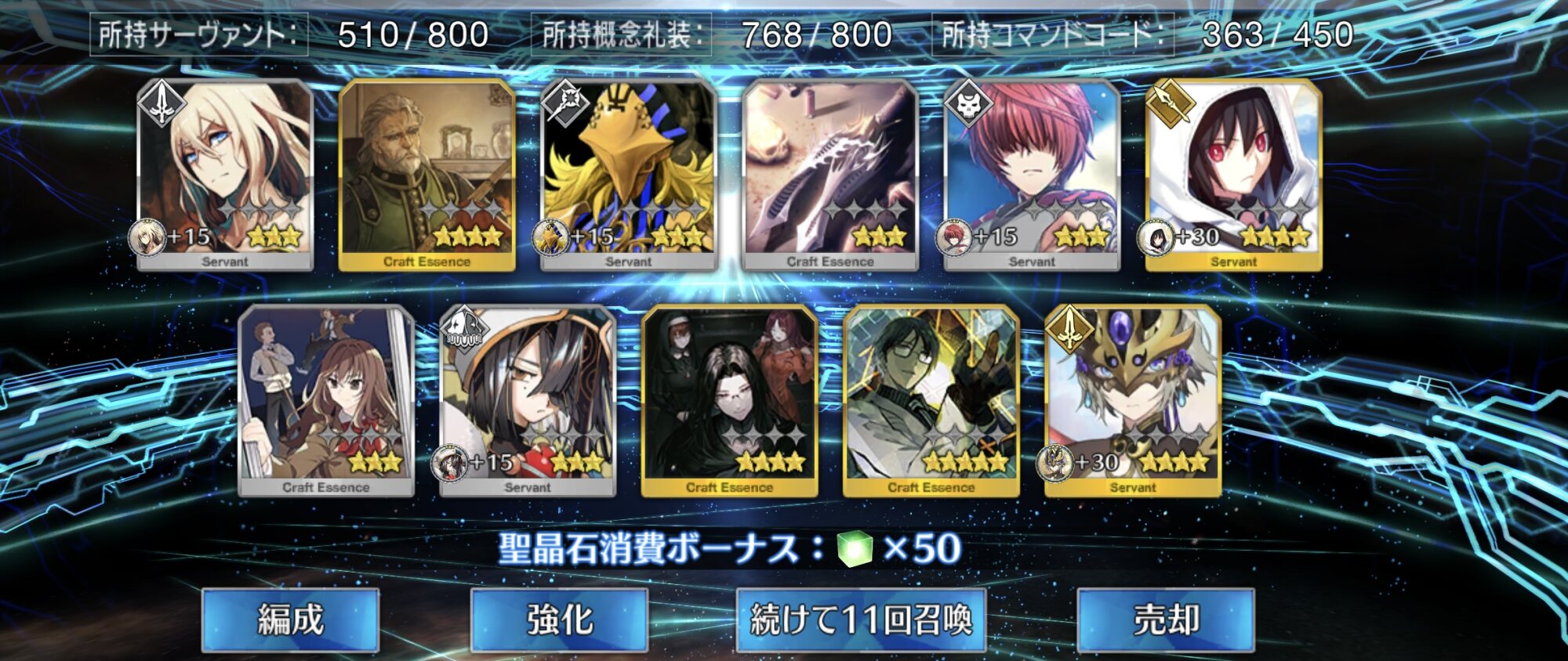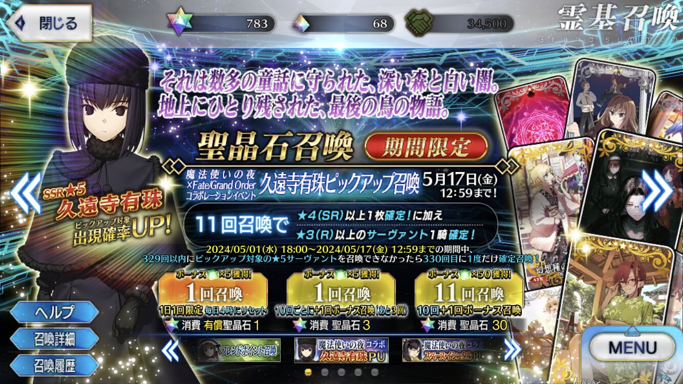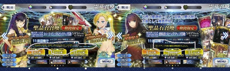 あと1騎来たごとにもらえるサーヴァントコインの枚数の関係で星4がだいぶコイン集めという意味でキツかったり