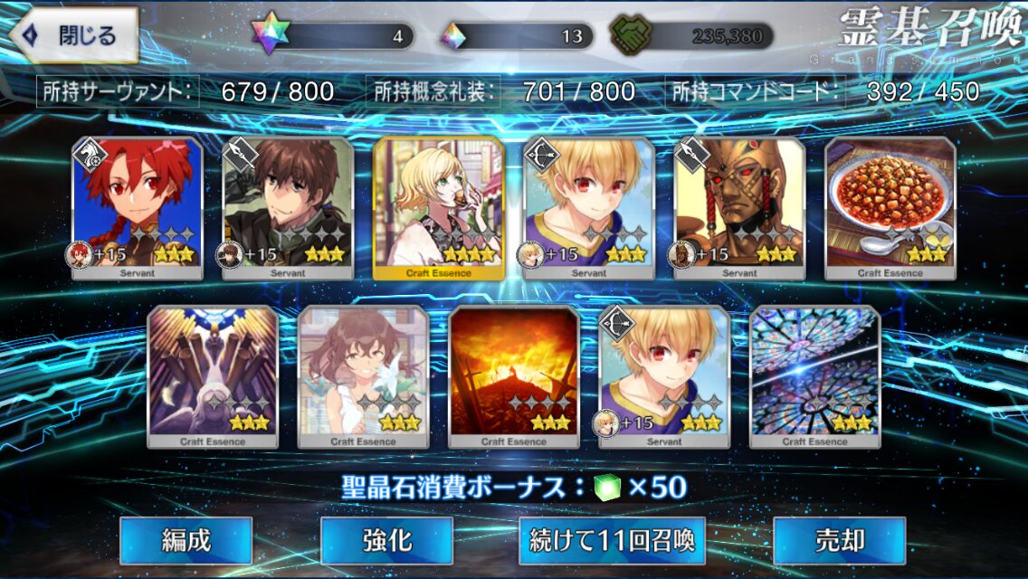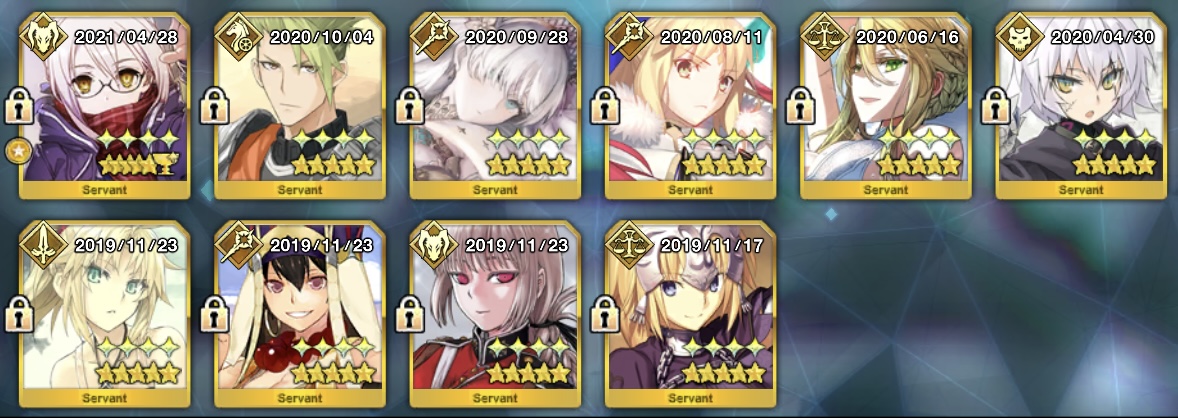宝具10はすごいな。無記名霊基5つか>>896