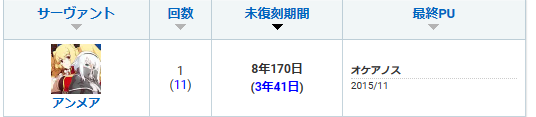 あ、アンメアは未復刻が今一番長い鯖だから得してるよ! すごいレアだよ!