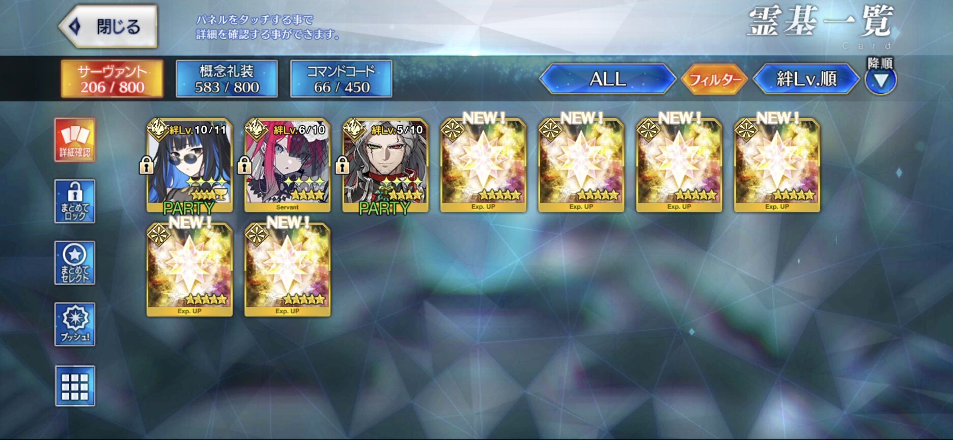 じゃあわからん青子さん さっき頑張って引いてスキル上げしようとしたら八連双晶がすっからかんだったんだけどさ