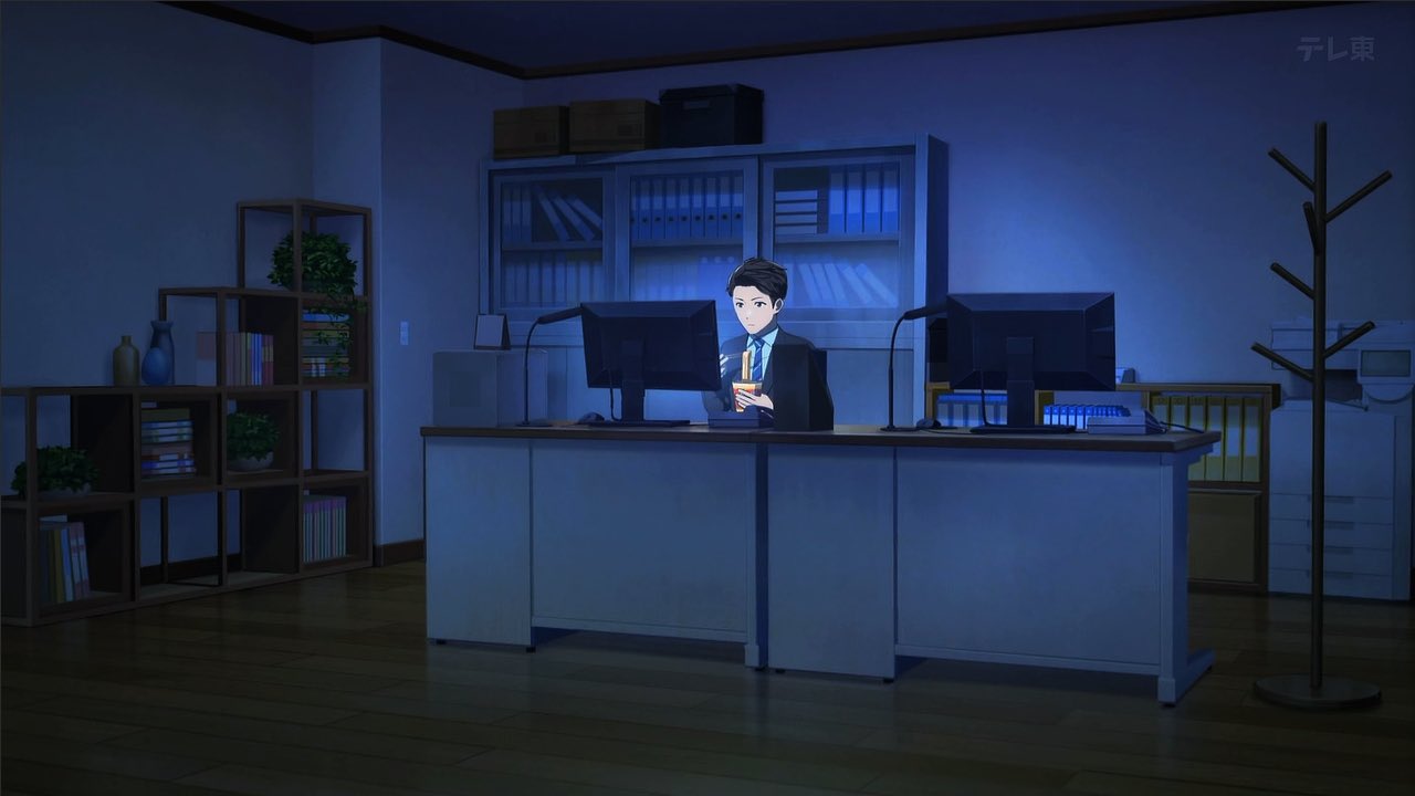漫画内に描写だと完全なデスクワーカーですね。残業多いからジム行く余裕も無さそう。人類は499万9000年飢え続けた生き残りの産物なの