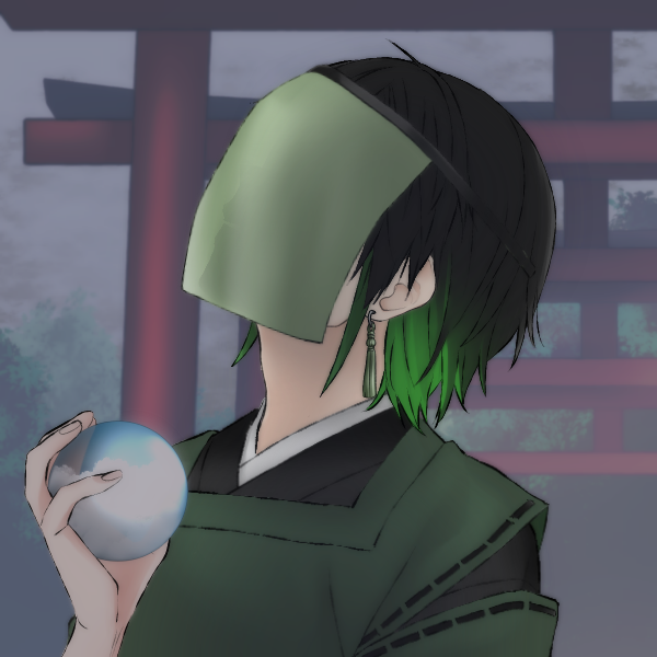 兄をつくったから弟をつくらなきゃというおもいでつくりました。実は隠し設定で面布と黒い帯で二重に顔と目を隠しており。目は実は生前贖罪として自ら失っちゃったので義眼のようなのでつけている。いずれ妻のトヨタマヒメも作りたい。