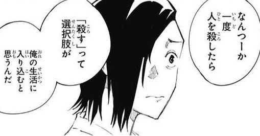 なんで五条対宿儺の戦いに共闘することもなく、干渉しなかったかと言えば、五条の足手まといになるからだよね?ちゃんと読んでた?と牽強付会なコメントに困惑する。人間爆弾
