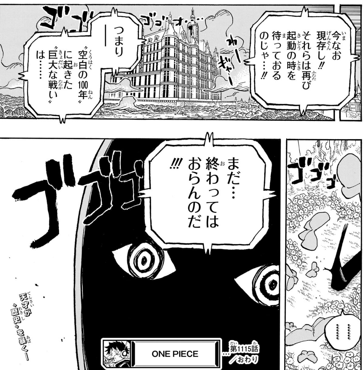 まあ、確定で抹殺成功させるには五条が適任だし、この上は上層部を活かす理由も五条やその他現場組には全くないもんな。五条も言う通りロック爺さんがいれば上層部は替えがきく部品に過ぎない。ジョイボーイがゾオン系で確定だと思う羽衣出てたしなニカの神話はどこから来たんだって話だな。