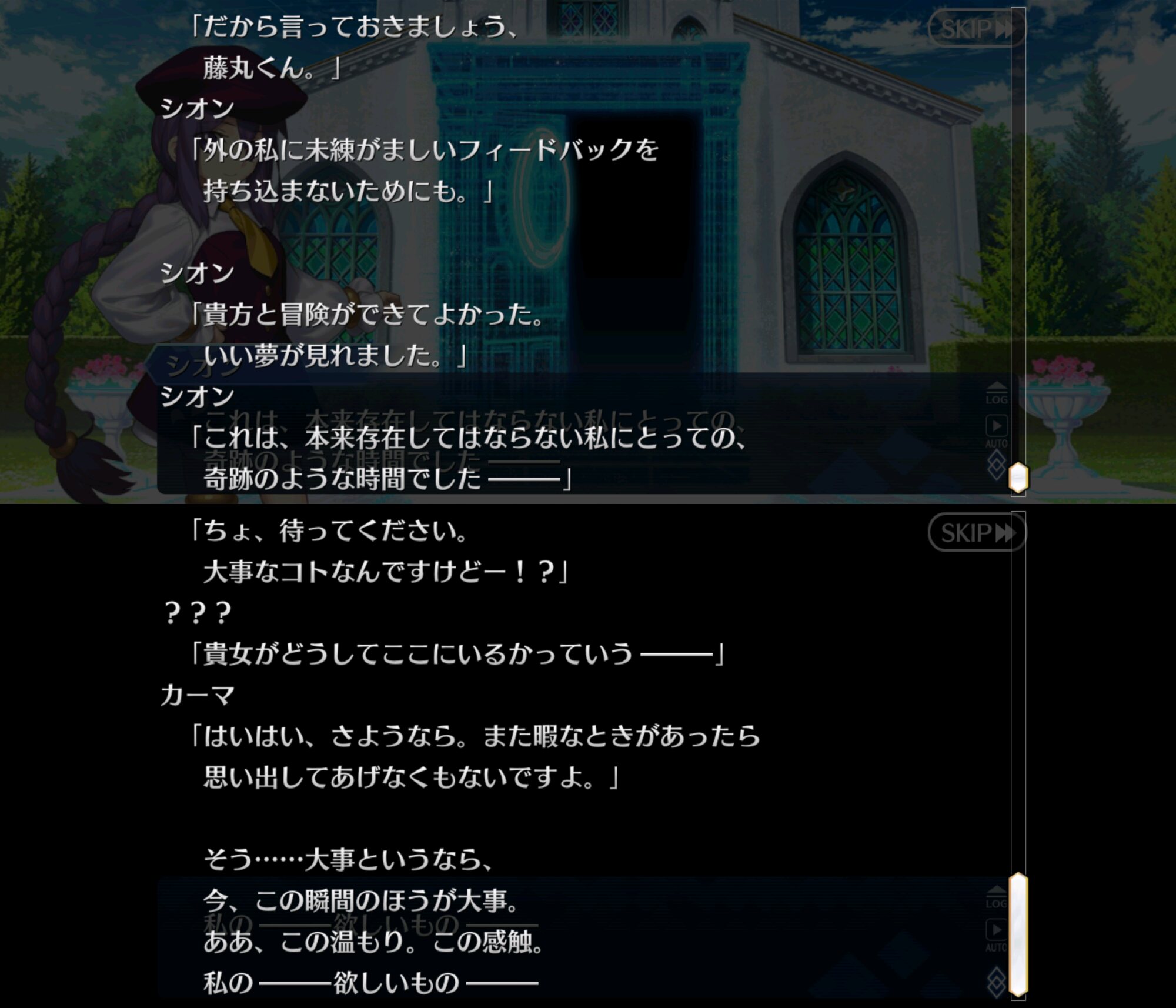 これでいいか?紙月シオンのヒロイン的立ち位置は恋愛要素絡んではいないけれどカルデアの一員として冒険がしたかったという既に捨てたはずの願いが形になったものだから尊いものであるんだ