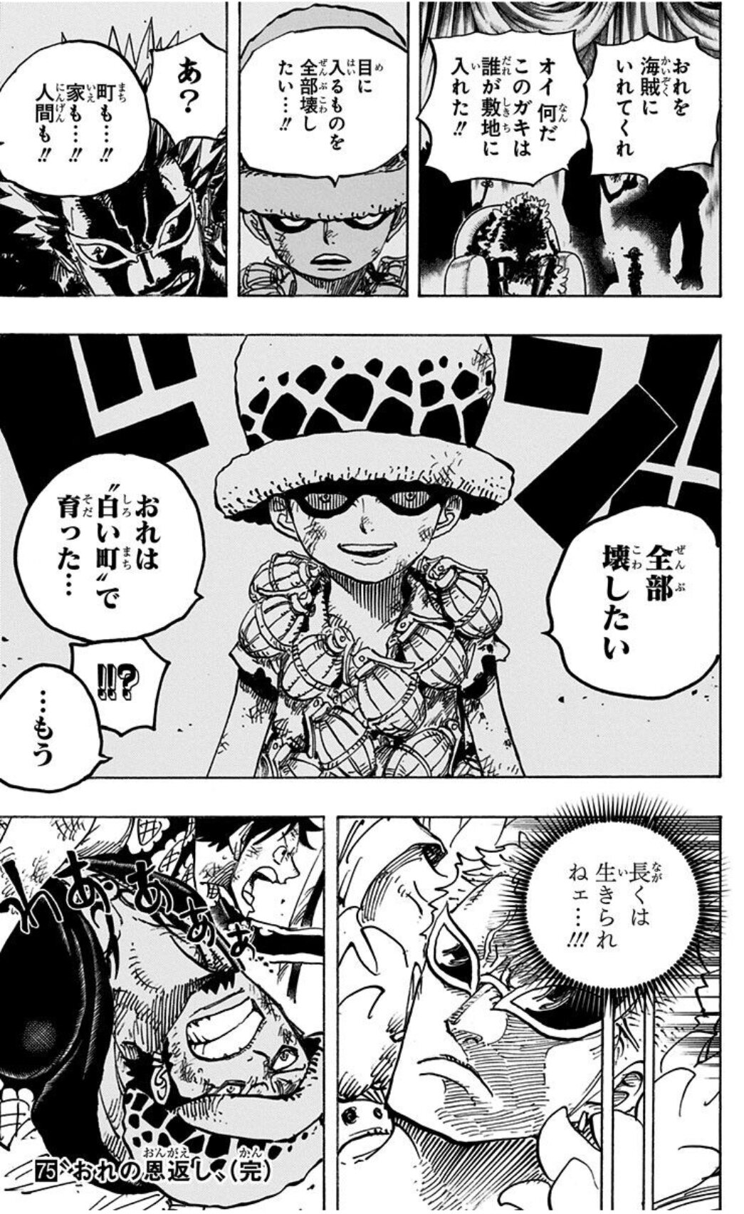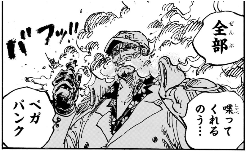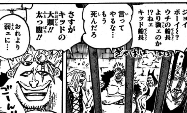 クローンの身の上に思うところがあるみたいだし、ベガパンクを親と思い生きる理由にしていたし、友人のカクを助けたいと願うとかさぁ。ここで退場はしないで欲しい!ルルシアが吹き飛ばされたってくだりでコーミル中将が出てきたのじわるものがある