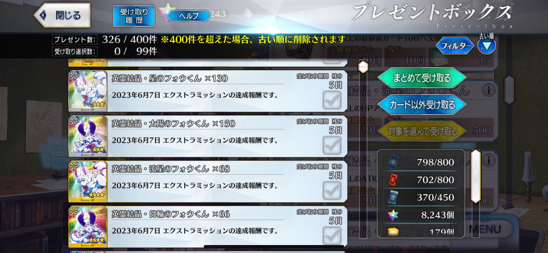 割と数日独占したりする鯖もいるし400超えという鯖数を考えると1日しかないというのは現実的ではないわな。1週間ほど期日を設けるカタチを取るのだと思われる。いつの間にかぐだが知らぬところでルールが女性鯖達で決められてそう・・・>>938