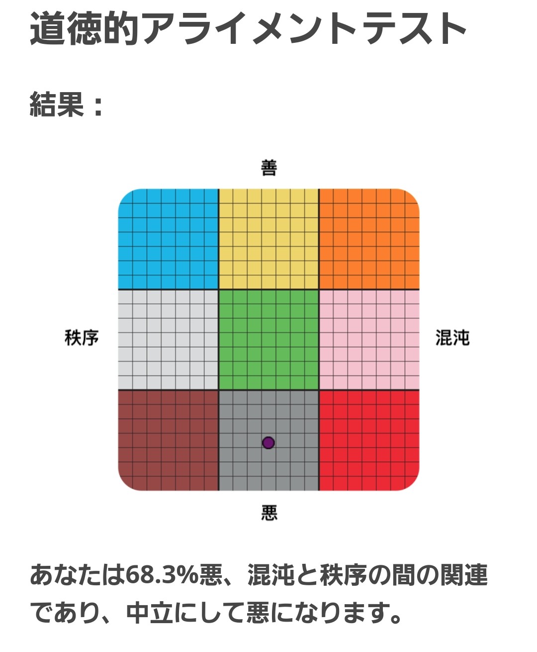 そういえば昨日話題になったアライメントテストやったら中立・悪と判定された