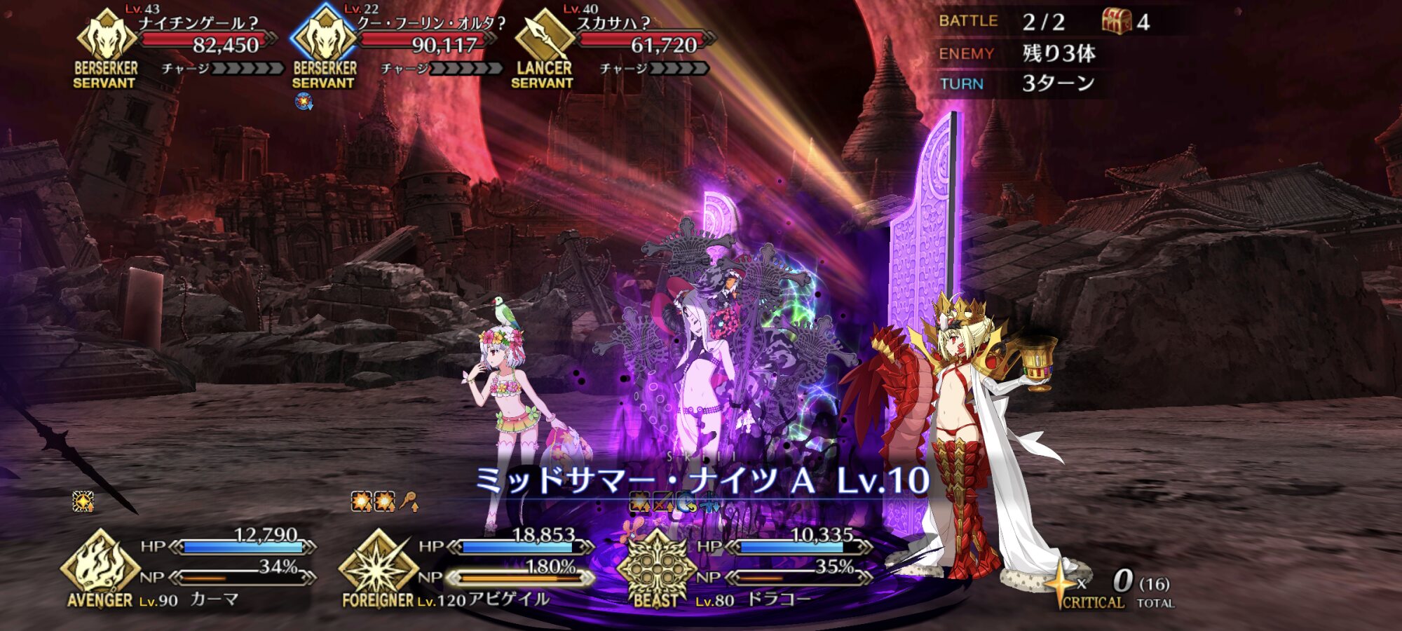 有珠で天井迎えてたからお財布的には厳しいそうだけど親が太陽とか、自分が太陽とか、武器が太陽とか、太陽属性のサーヴァント多いよね