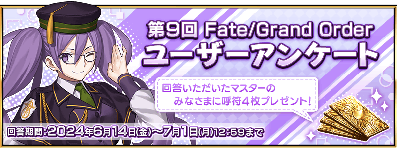 https://news.fate-go.jp/2024/questionnaire_9th - 2名無し2024/06/14(Fri) 19:02:30報告