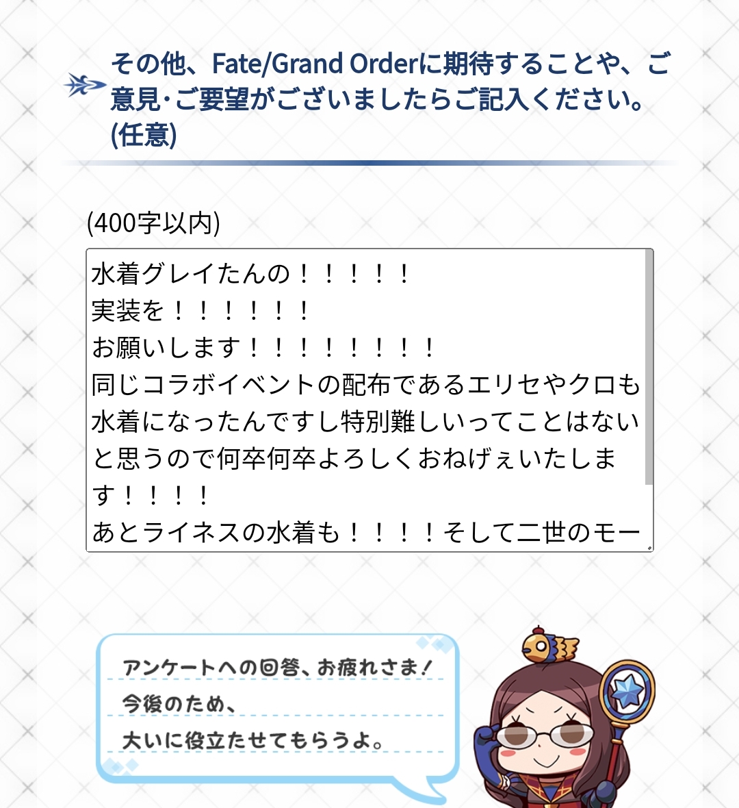 しかし、まだ先だがFGOがサ終したら夏のこの習慣も消えるのかと思うとちょっと寂しい気持ちある。>>870