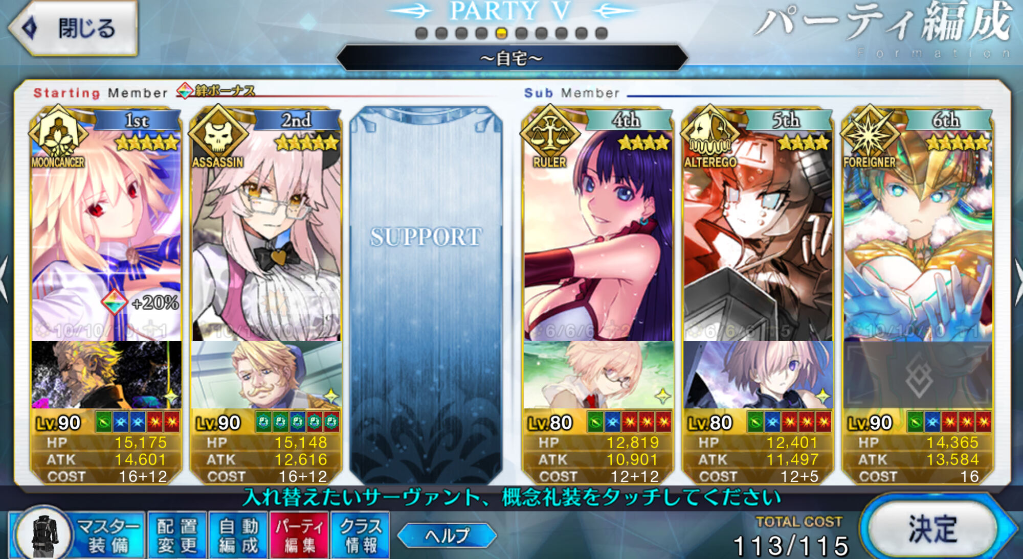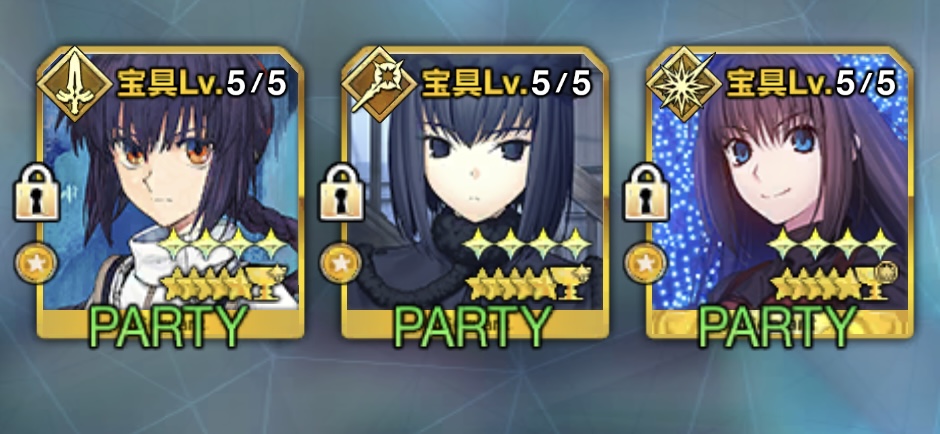英雄王(弓)、沖田さん(剣)、マーリン(術)、獅子王(槍)、
