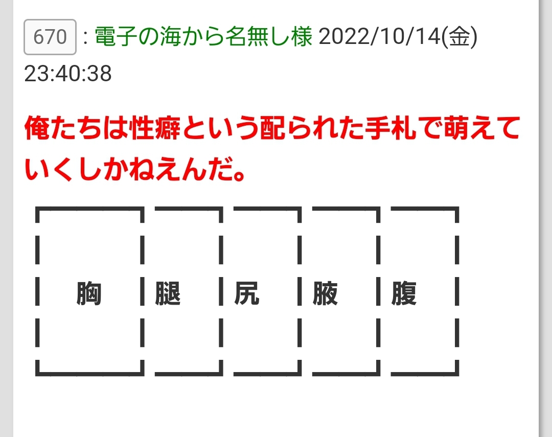 性癖開示祭りが開かれている…まるで雑スレみたいなところだなここは
