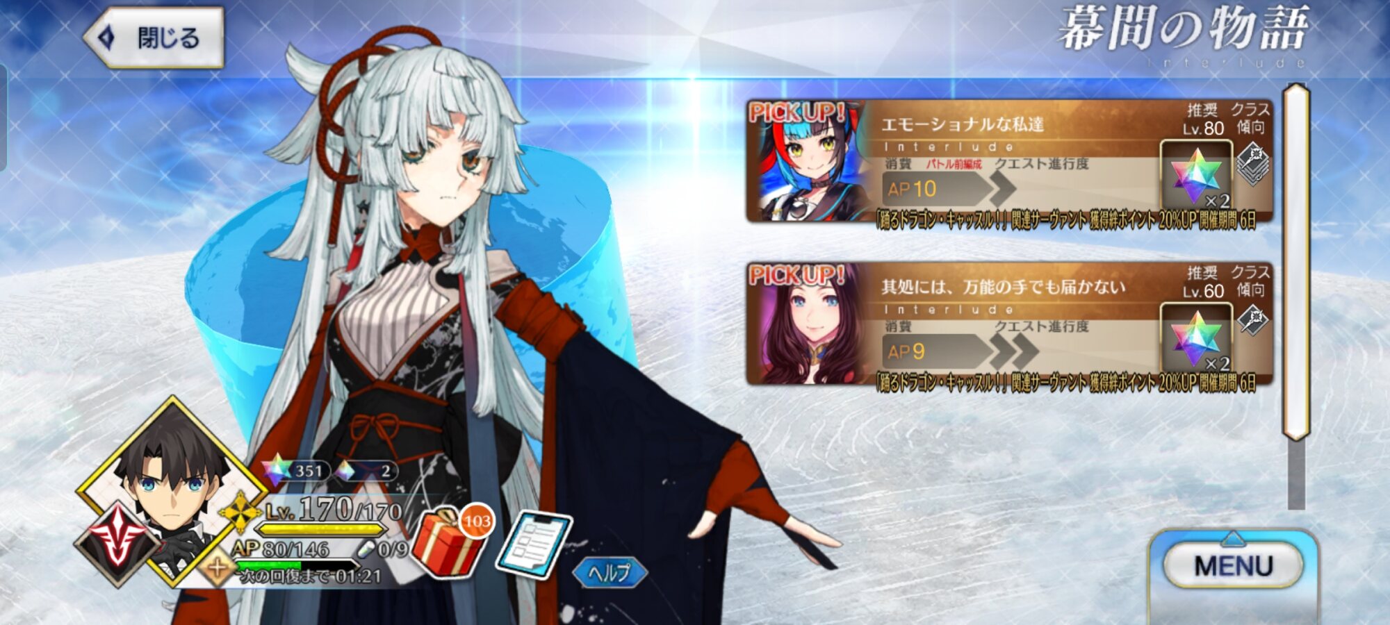 ママならぬものよなぁ…。よし!メンテ前にAP消費したぞ!
