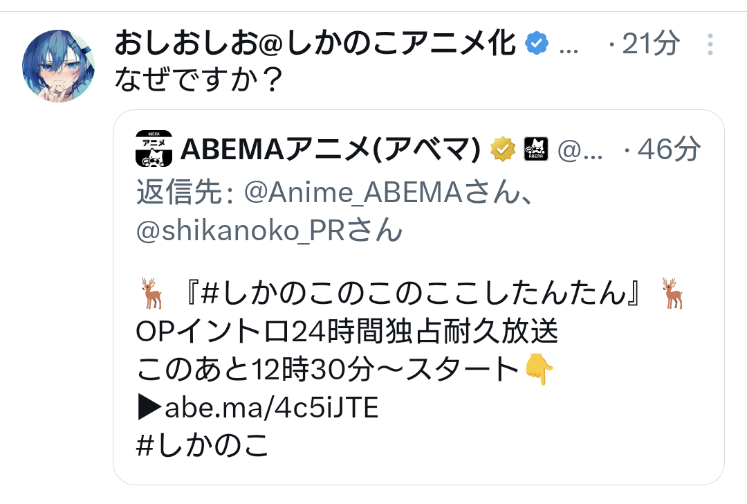 ループというかAbemaでしかのこのこのここしたんたんのイントロ耐久24時間wwww