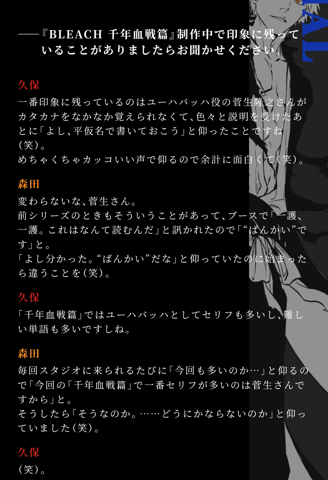 アニメでだいぶテンポ改善や映像のパワーで楽しめてるけど、マジの戦闘の塩試合化はこれからなんだよなBLEACHの千年血戦篇。>>973