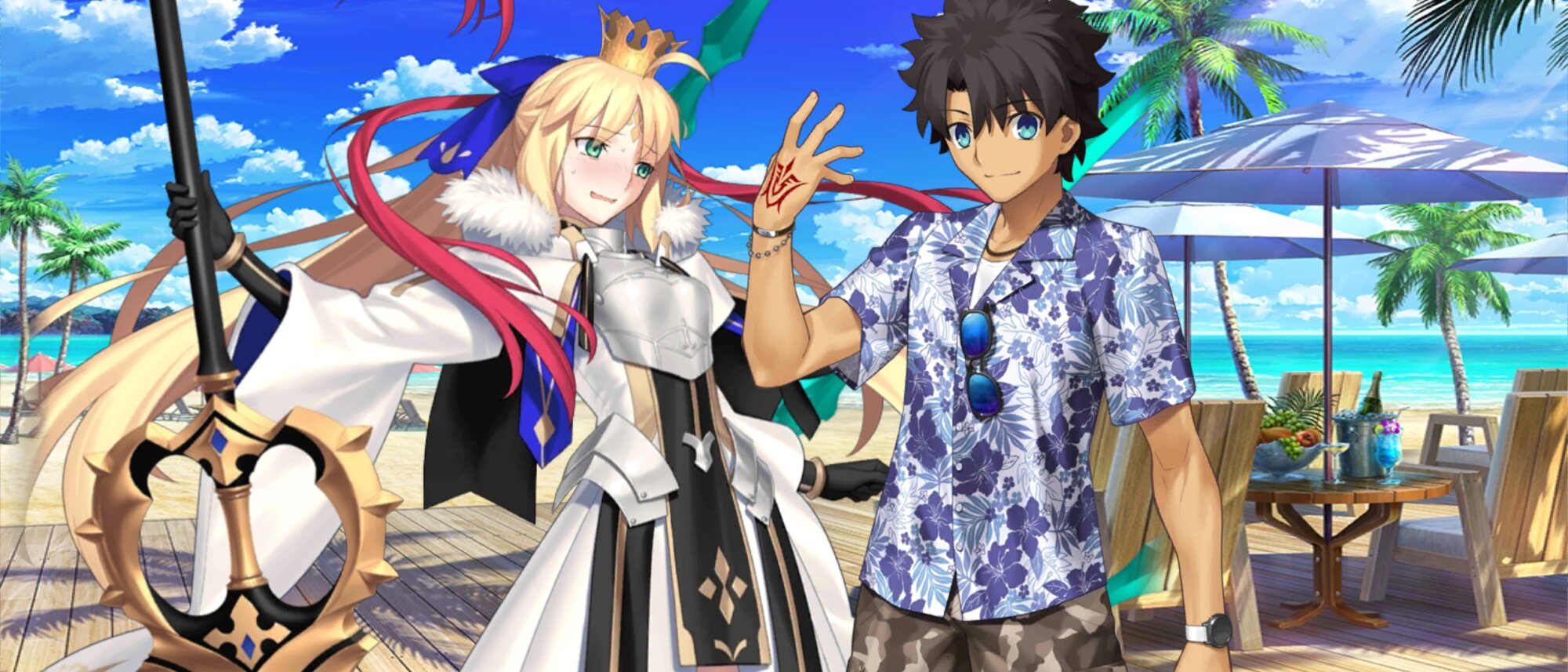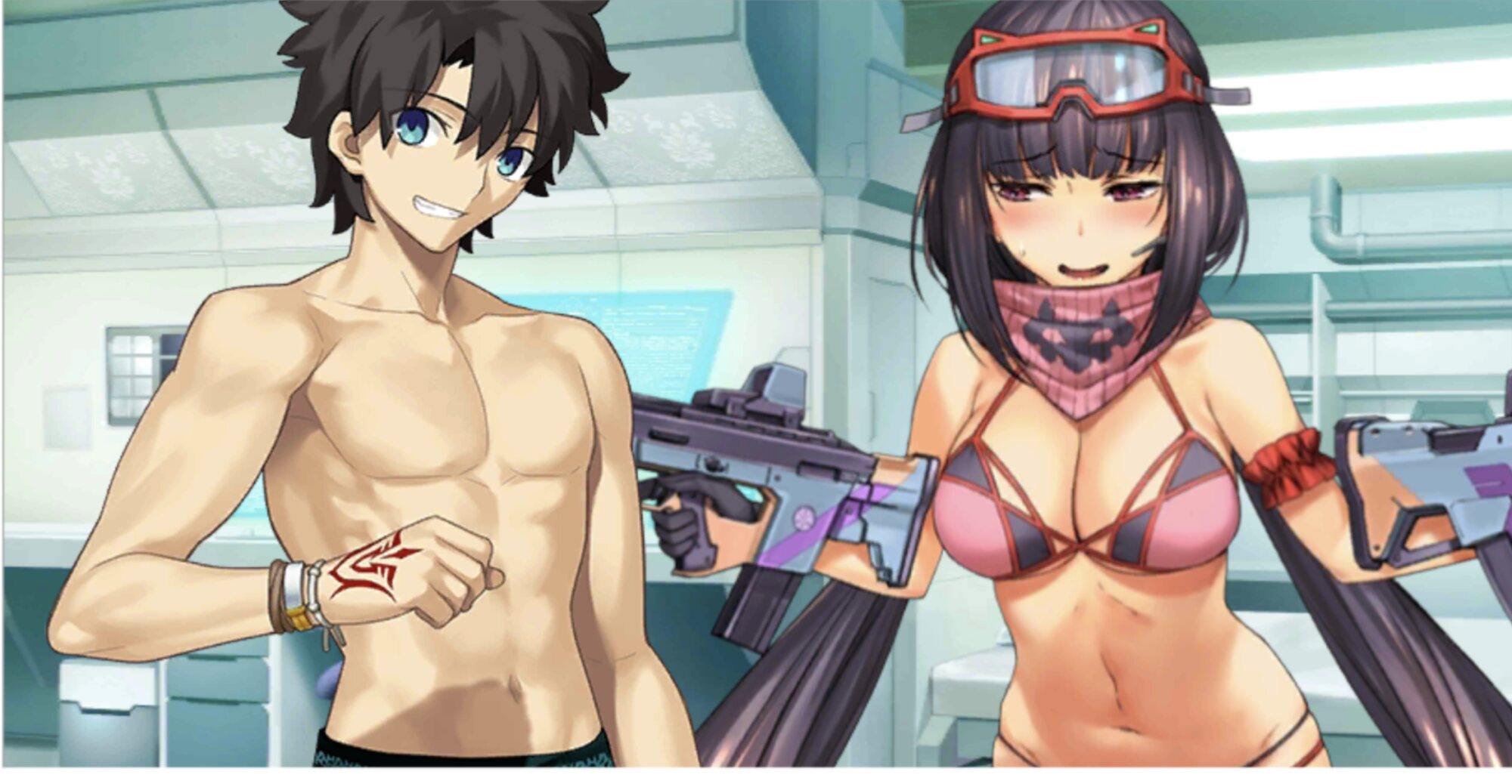 これからマリンスポーツする感凄まじい藤丸の筋肉に反応する女性サーヴァント達